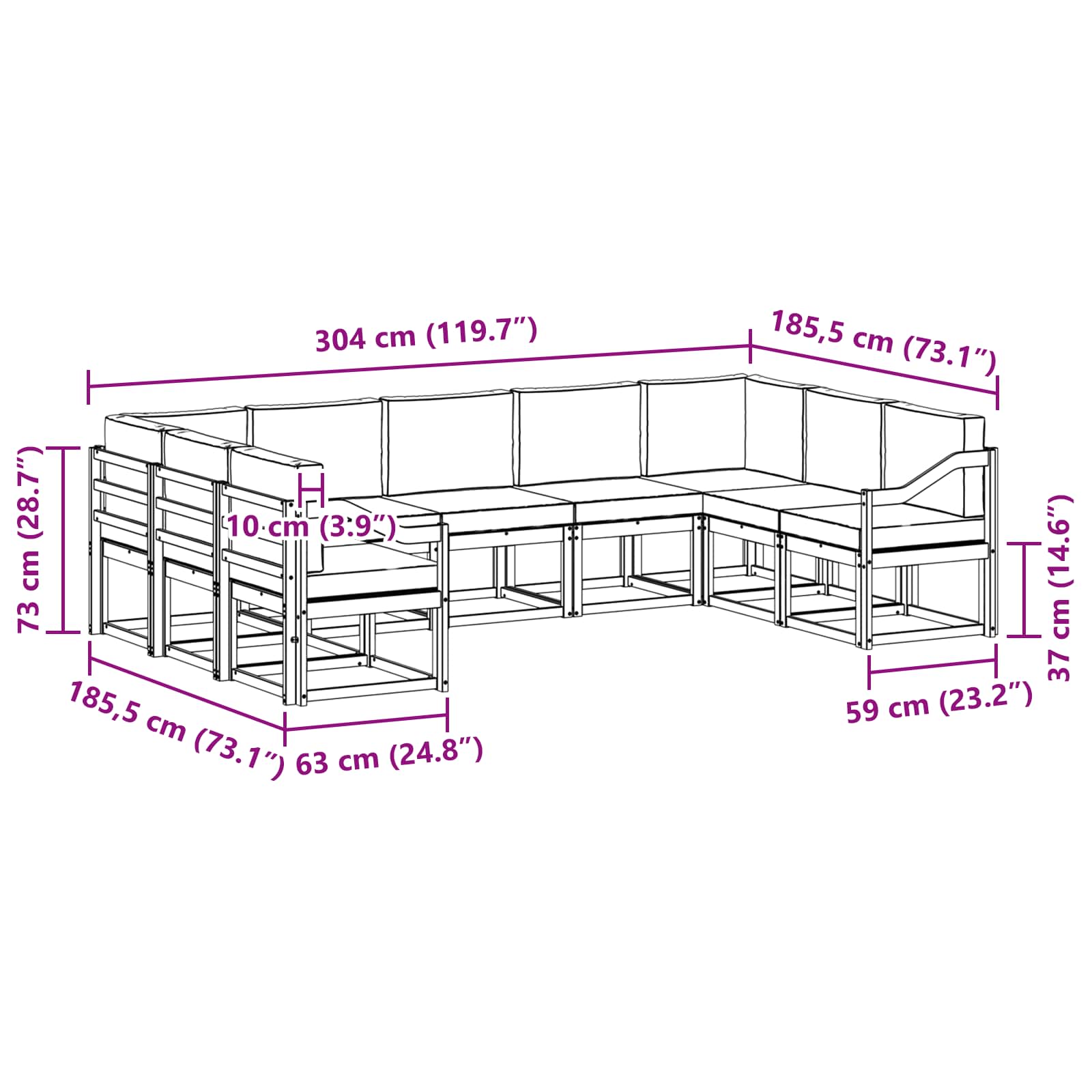 - 9 x sedežna blazina: 60 x 60 x 8 cm (D x Š x V)
