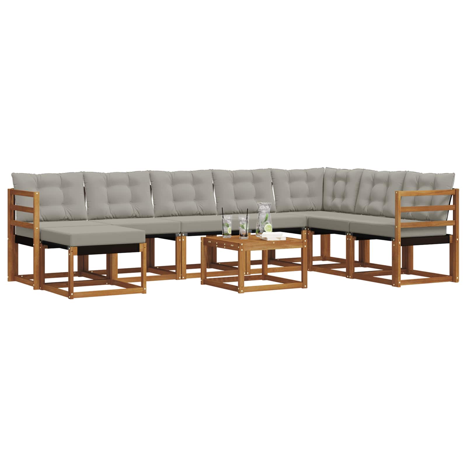 Ta sodoben set kavča je super dodatek za zunanje prostore. Opremljen je s čistimi linijami in minimalnim okrasjem, kar mu daje sofisticiran videz, idealen za moderne vrtnarske nastavitve. Odličen je za druženja na terasi ali ob bazenu, nudi udobje s trdno konstrukcijo in luksuznimi blazinami, ki vabijo k sproščenim popoldnevom in živahnim večernim druženjem. Trdna akacijeva konstrukcija Ta set je narejen iz robustnega akacijevega lesa, znanega po svoji trpežnosti in naravni teksturi. Les ima bogat videz, ki obogati vsak zunanji prostor ter nudi podporo za vsakodnevne obremenitve in vremenske razmere. Udobna textilena Set kavča ima sedežno površino iz textilene, ki zagotavlja vrhunsko udobje in podporo. Ta material je odporen na bledenje, tako da ohranja živahnost tudi pod močnimi sončnimi žarki. Kombinacija materialov je praktična in elegantna, idealna za zunanjo uporabo. Vodoodporne blazine Debele vodoodporne blazine nudijo edinstveno udobje. S penastim jedrom so blazine odporne na vlago in se z lahkoto snemajo z zadrgo za preprosto čiščenje, kar olajša vzdrževanje. Udobni nasloni za roke Nasloni za roke so iz trdnega akacijevega lesa, dodajo ergonomijo in spodbujajo sproščeno sedenje. So estetsko privlačni in zanesljivi, skladni z ostalo konstrukcijo, kar ustvarja prijetno izkušnjo sedenja. Enostavno čiščenje Ta set zahteva malo vzdrževanja; površine lahko enostavno obrišete z vlažno krpo. Tako ostane set privlačen brez večjih trudov, kar vam omogoča, da se sprostite v udobju.