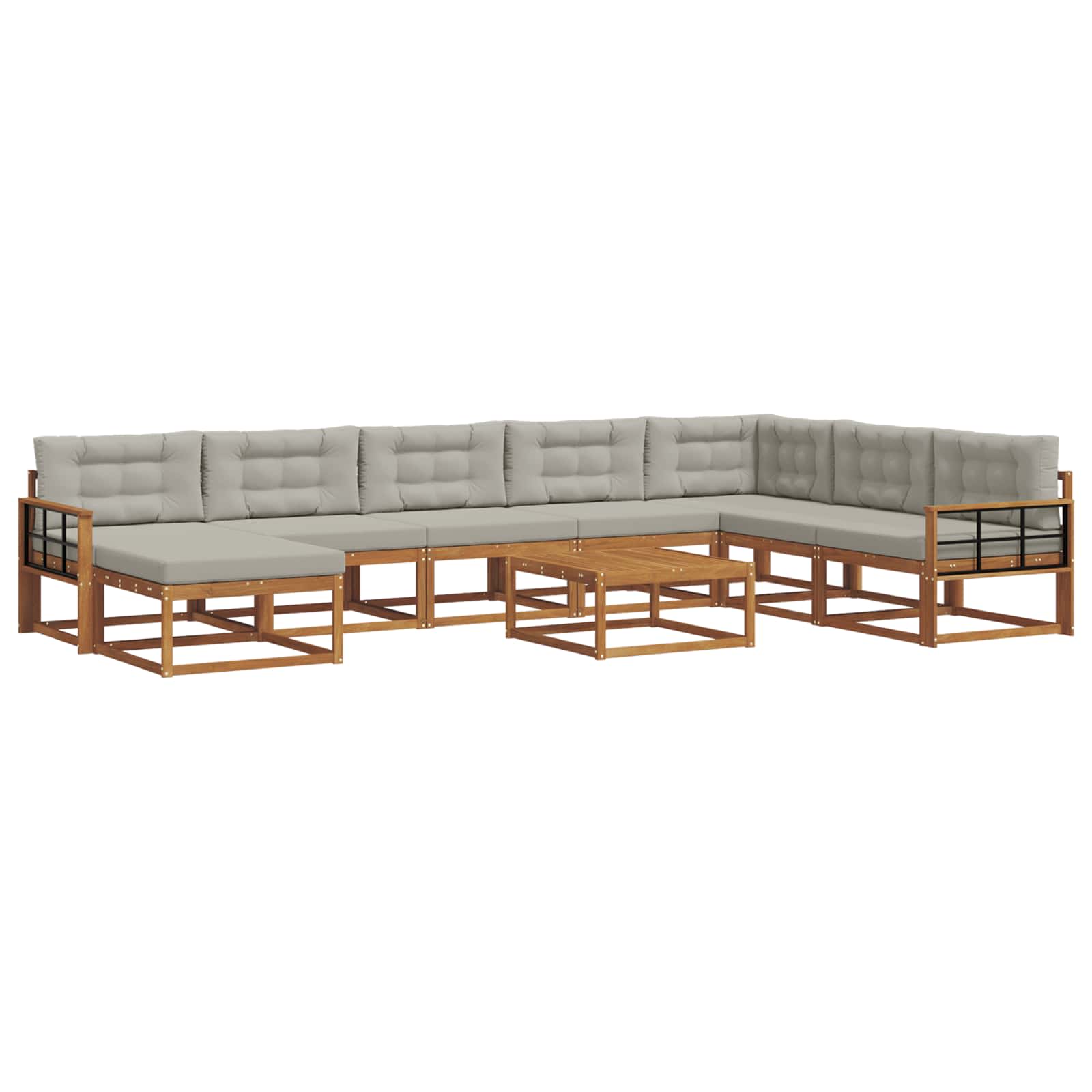 Ta zunanja sekcijska garnitura je zasnovana, da polepša vaš vrt, teraso, prostor ob bazenu ali dvorišče. Nudi prijetno mešanico estetike in uporabnosti z čistimi linijami in minimalističnim slogom. Zasnovana je za uživanje na prostem, ponuja pa dovolj prostora za sedenje, ko se družite ali sproščate. Vzdržljiv akacijev les: Ta sekcijska garnitura je narejena iz visoko kakovostnega akacijevega lesa, ki je znan po dolgi življenjski dobi. Akacijev les je naravno odporen na vreme, kar ga dela odlično izbiro za zunanje pohištvo. Njegova robustna struktura zagotavlja stabilnost brez kompromisov pri stilu, obdrži svoj sofisticiran videz skozi čas. Podporni naslon iz letvic: Garnitura ima naslon iz letvic, ki nudi odlično podporo in udobje za dolgotrajno uporabo. Zasnova letvic ne dodaja le estetske vrednosti, ampak tudi omogoča prehod zraka, kar povečuje udobje, še posebej na vročih dneh. Praktična naslonjala za roke: Garnitura ima trdna naslonjala za roke, zasnovana za udobje. So tako praktična kot stilska, kar uporabnikom omogoča sprostitev rok med različnimi aktivnostmi, kot so branje, klepet ali uživanje v pijačah. Sodoben in funkcionalen dizajn: Ta sekcijska garnitura uteleša sodobno preprostost s svojimi čistimi linijami in funkcionalnostjo, kar ji omogoča, da se popolnoma vklopi v različne zunanje prostore. Njen sofisticiran rjav akacijev les se ujema z naravo in ostalim zunanjim dekorjem. Enostavna oskrba: Vzdrževanje te garniture je preprosto. Preprosto jo obrišite z vlažno krpo za rutinsko čiščenje in jo pokrijte, ko ni v uporabi. Izogibajte se neposredni sončni svetlobi za ohranitev njene lepote in trajnosti.