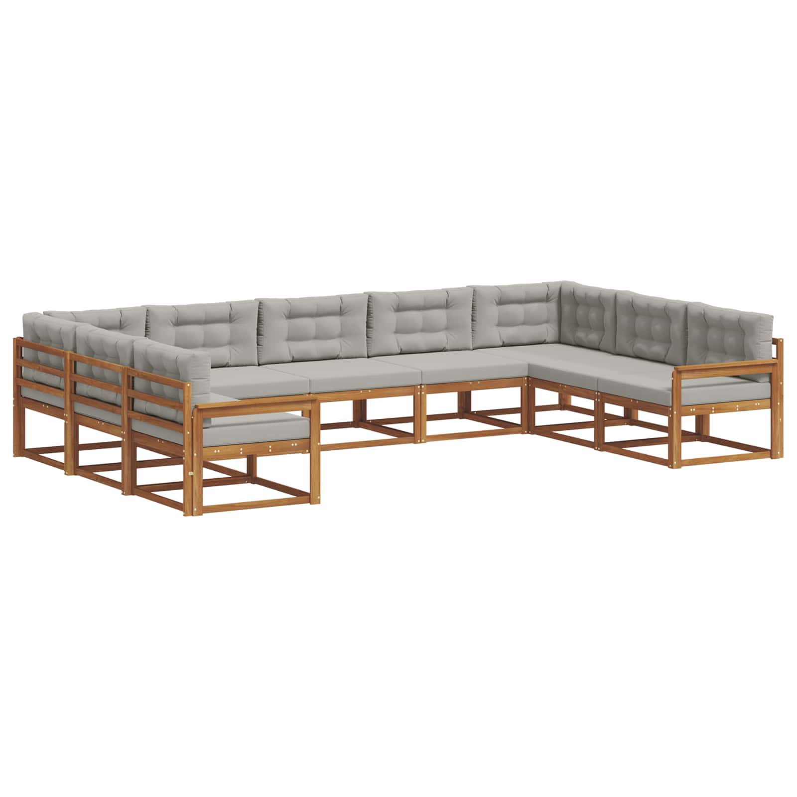 Ta kotna sedežna garnitura je pravi izraz sodobnega sloga in funkcionalnosti, odlična izbira za vsak vrt, patio ali ob bazenu. Njena elegantna zasnova s čistimi linijami je za tiste, ki cenijo preprostost in praktičnost. Ne glede na to, ali organiziraš druženje ali uživaš v mirnem večeru, ta garnitura ponuja udobje in večjo uporabnost ter postane nujen del tvojega zunanjega življenja. Trdna konstrukcija: Celoten set je iz solidnega akacijevega lesa, ki je znan po svoji vzdržljivosti. Ta les prenese različne vremenske razmere in je odlična izbira za zunanjo uporabo. Njegova trda buda zagotavlja dolgo življenjsko dobo, kar ti omogoča, da uživaš v svojem zunanjem raju doli še dolgo časa. Pohodna zasnova: S premišljeno zasnovo hrbta, ta sedež nudi podporo in udobje. S to zasnovo ima tudi boljše kroženje zraka, kar povečuje udobje v toplejših dneh. Ta dizajn prinaša tudi sodoben pridih celotni estetiki. Praktični nasloni za roke: Z robustnimi akacijevimi nasloni, ta garnitura povečuje udobje in ti omogoča popolno sprostitev. Nasloni nudijo dodatno podporo za pogovore ali uživanje na prostem. Ta lastnost združuje slog in funkcionalnost na odličen način. Enostavno vzdrževanje: Svoje pohištvo enostavno neguj z brisanjem z vlažno krpo in uporabo prevleke, ko ga ne uporabljaš. Trdna konstrukcija zahteva minimalno vzdrževanje, kar ti daje več časa za uživanje na prostem. Izogibaj se neposredni sončni svetlobi, da ohraniš naravni sijaj. Sestavljanje: Ta set je zasnovan za enostavno sestavljanje, potrebuje le dve osebi in izvijač. Postupak zagotavlja stabilnost in takojšnjo pripravljenost, da tvoj prostor zasije.