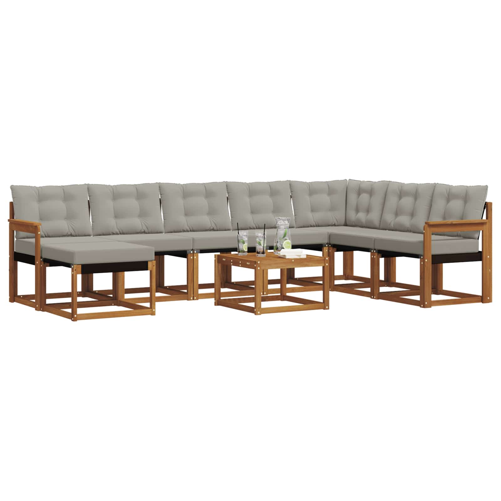 Ta sodoben set kavča je super dodatek za zunanje prostore. Opremljen je s čistimi linijami in minimalnim okrasjem, kar mu daje sofisticiran videz, idealen za moderne vrtnarske nastavitve. Odličen je za druženja na terasi ali ob bazenu, nudi udobje s trdno konstrukcijo in luksuznimi blazinami, ki vabijo k sproščenim popoldnevom in živahnim večernim druženjem. Trdna akacijeva konstrukcija Ta set je narejen iz robustnega akacijevega lesa, znanega po svoji trpežnosti in naravni teksturi. Les ima bogat videz, ki obogati vsak zunanji prostor ter nudi podporo za vsakodnevne obremenitve in vremenske razmere. Udobna textilena Set kavča ima sedežno površino iz textilene, ki zagotavlja vrhunsko udobje in podporo. Ta material je odporen na bledenje, tako da ohranja živahnost tudi pod močnimi sončnimi žarki. Kombinacija materialov je praktična in elegantna, idealna za zunanjo uporabo. Vodoodporne blazine Debele vodoodporne blazine nudijo edinstveno udobje. S penastim jedrom so blazine odporne na vlago in se z lahkoto snemajo z zadrgo za preprosto čiščenje, kar olajša vzdrževanje. Udobni nasloni za roke Nasloni za roke so iz trdnega akacijevega lesa, dodajo ergonomijo in spodbujajo sproščeno sedenje. So estetsko privlačni in zanesljivi, skladni z ostalo konstrukcijo, kar ustvarja prijetno izkušnjo sedenja. Enostavno čiščenje Ta set zahteva malo vzdrževanja; površine lahko enostavno obrišete z vlažno krpo. Tako ostane set privlačen brez večjih trudov, kar vam omogoča, da se sprostite v udobju.