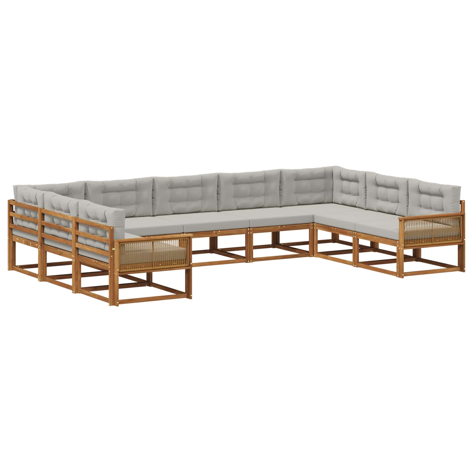 Ta kotna sedežna garnitura je pravi izraz sodobnega sloga in funkcionalnosti, odlična izbira za vsak vrt, patio ali ob bazenu. Njena elegantna zasnova s čistimi linijami je za tiste, ki cenijo preprostost in praktičnost. Ne glede na to, ali organiziraš druženje ali uživaš v mirnem večeru, ta garnitura ponuja udobje in večjo uporabnost ter postane nujen del tvojega zunanjega življenja. Trdna konstrukcija: Celoten set je iz solidnega akacijevega lesa, ki je znan po svoji vzdržljivosti. Ta les prenese različne vremenske razmere in je odlična izbira za zunanjo uporabo. Njegova trda buda zagotavlja dolgo življenjsko dobo, kar ti omogoča, da uživaš v svojem zunanjem raju doli še dolgo časa. Pohodna zasnova: S premišljeno zasnovo hrbta, ta sedež nudi podporo in udobje. S to zasnovo ima tudi boljše kroženje zraka, kar povečuje udobje v toplejših dneh. Ta dizajn prinaša tudi sodoben pridih celotni estetiki. Praktični nasloni za roke: Z robustnimi akacijevimi nasloni, ta garnitura povečuje udobje in ti omogoča popolno sprostitev. Nasloni nudijo dodatno podporo za pogovore ali uživanje na prostem. Ta lastnost združuje slog in funkcionalnost na odličen način. Enostavno vzdrževanje: Svoje pohištvo enostavno neguj z brisanjem z vlažno krpo in uporabo prevleke, ko ga ne uporabljaš. Trdna konstrukcija zahteva minimalno vzdrževanje, kar ti daje več časa za uživanje na prostem. Izogibaj se neposredni sončni svetlobi, da ohraniš naravni sijaj. Sestavljanje: Ta set je zasnovan za enostavno sestavljanje, potrebuje le dve osebi in izvijač. Postupak zagotavlja stabilnost in takojšnjo pripravljenost, da tvoj prostor zasije.