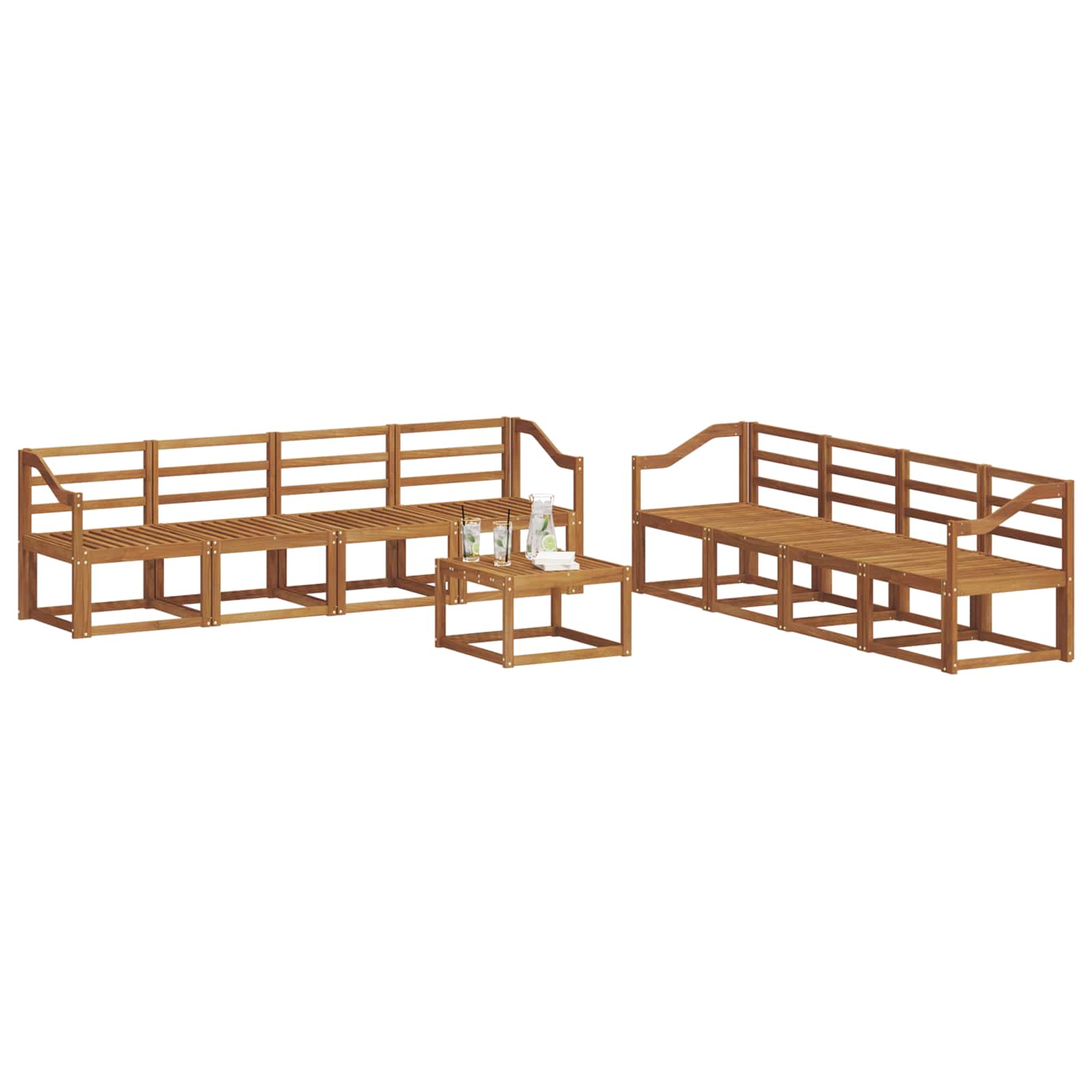 Ta hladna zunanja sedežna garnitura je odlična izbira za vsak vrt ali teraso. Ima preprost, a funkcionalen sodoben slog. Narejena iz trdnega akacijevega lesa, zagotavlja robustno konstrukcijo, ki bo trajala dolgo časa, tudi na prostem. Zasnovana je z rešetkasto konstrukcijo, kar povezuje estetiko z zračnostjo in ustvarja udoben prostor za sprostitev ob dobri družbi. Bogati rjavi odtenki okvirja, naslonjal in površine se super ujemajo s sodobnim dizajnom, zato je perfektna za preživljanje časa zunaj s prijatelji ali družino. Materiali: Celoten okvir, naslonjala in hrbtni del so narejeni iz trdnega akacijevega lesa, kar daje čvrstost in naraven videz. Akacija je znana po dolgi življenjski dobi in naravni odpornosti na vremenske vplive, kar pomeni, da ohranja svoj šarm tudi v slabših vremenskih razmerah. Tako lahko uživate v zunanjosti brez skrbi. Vključene komponente: Premišljena zasnova kavča vključuje ergonomska naslonjala in podporo za hrbet, kar zagotavlja udobno sedenje za vsakogar. Trajna površina je stabilna za blazine in doda šik dotik celotni podobi. Lastnosti / Funkcije / Oblika: Rešetkasta zasnova doda vrednost tako v obliki kot funkciji. Ne le, da izboljša vizualno privlačnost s svojimi sodobnimi linijami, ampak tudi omogoča odtekanje vode in zračenje, kar preprečuje vlago. Njena minimalistična okrasitev krepi sodoben slog. Priporočena uporaba: Ta sedežna garnitura je idealna za zunanje prostore, kot so vrtovi in terase. Popolna je za poletne zabave ali mirne zahode ob dobri knjigi. Lahko jo uporabite tudi za zunanje večerje ali pri prijateljskih pogovorih. Nega in vzdrževanje: Preprosto jo očistite z mehko suho krpo, da odstranite prah ali umazanijo. V slabem vremenu priporočamo uporabo zaščitne prevleke, da ohranite naravno lepoto lesa. Redno vzdrževanje podaljšuje njeno uporabo in užitek.