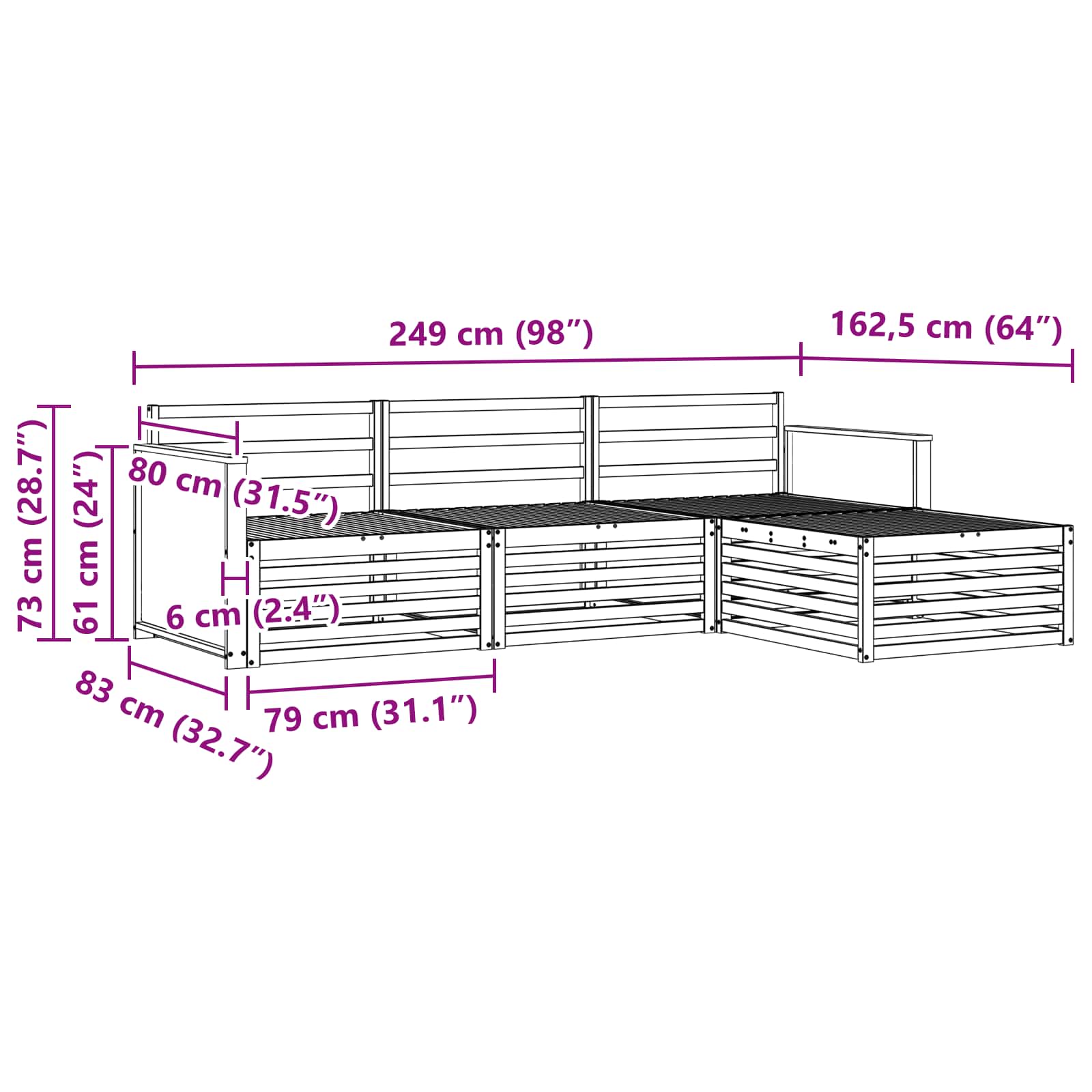 - 3 x Srednji kavč: 79 x 83 x 73 cm (D x Š x V)