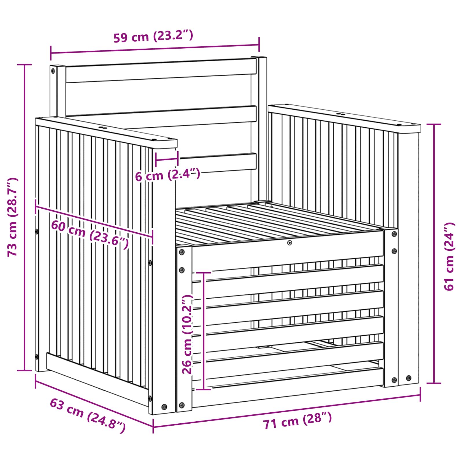 - 2 x Naslon: 60 x 6 x 61 cm (D x Š x V)