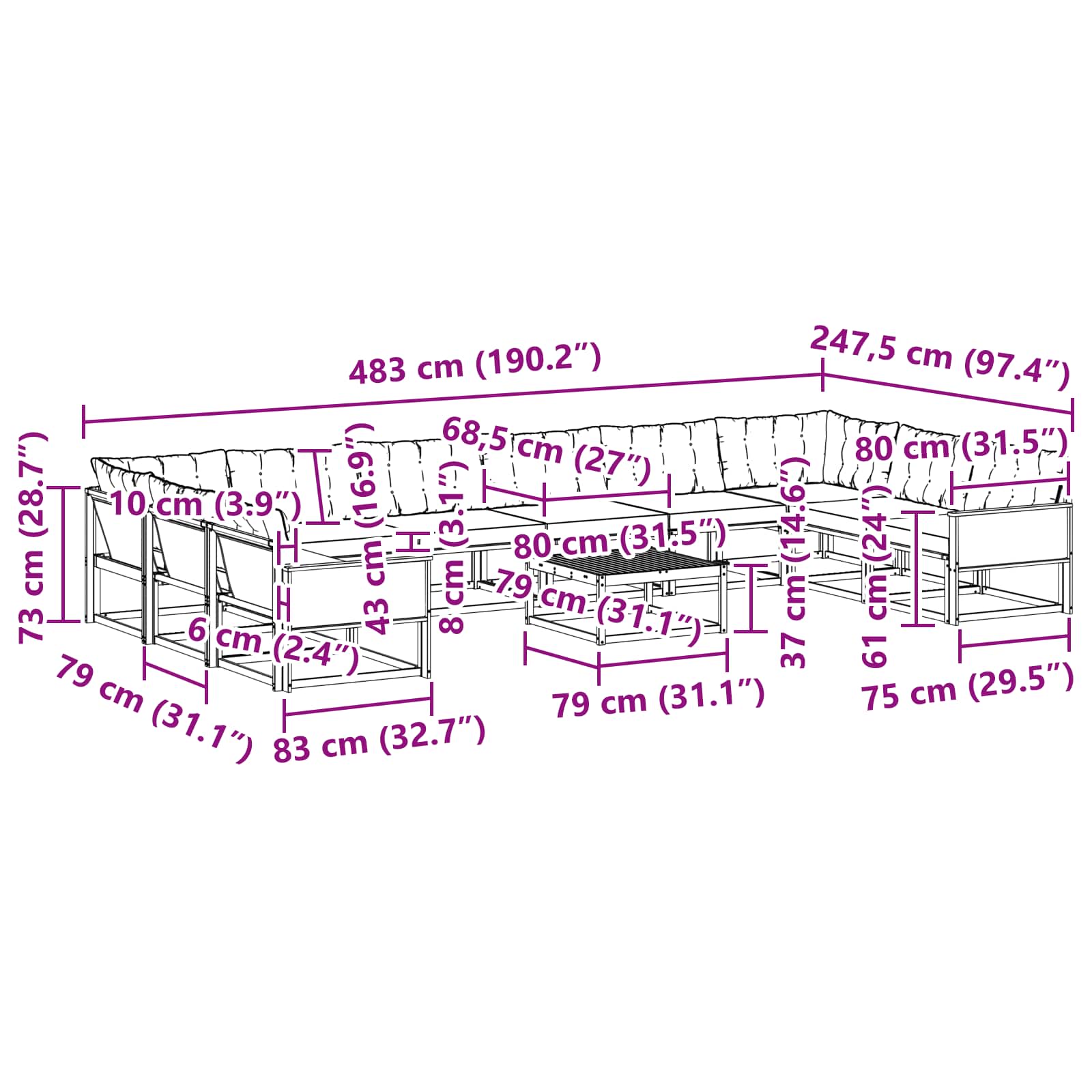 - 8 x Sedežna Blazina: 80 x 68,5 x 8 cm (D x Š x T)