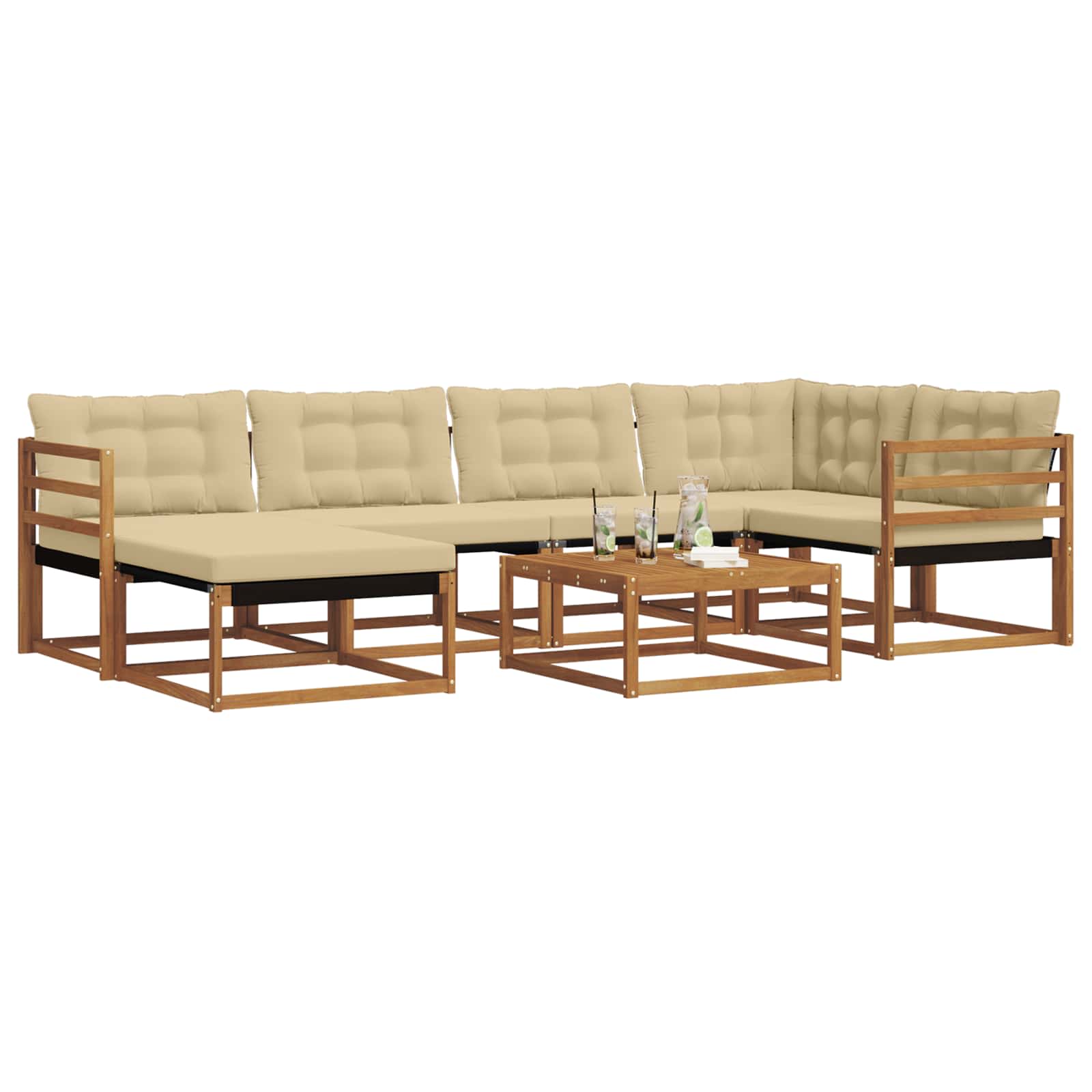 Ta soglasna sedežna garnitura lepo popestri vsak vrt ali teraso. Združuje udobje in stil ter je idealna za družinska srečanja. Trden akacijev les: Ta material dvigne videz seta in zagotavlja dolgo življenjsko dobo, ne glede na vreme. Naravni leseni toni se super zlijejo z zunanjim okoljem, kar ga naredi za brezčasno izbiro za vaš vrt ali teraso. Njegova odpornost proti obrabi ga naredi primerno za družabna srečanja in mirne trenutke. Integrirani elementi: Sofe imajo udobne naslone za roke in robusten okvir, oba narejena iz akacijevega lesa. Textilene hrbtne stene in debelo oblazinjene blazine nudijo dolgotrajno udobje. Snemljive sedežne blazine so z zadrgo, kar omogoča, da hitro in lahko očistite. Funkcionalne lastnosti: Zasnovan za uporabo na prostem, ta set je odporen na bledenje in enostaven za čiščenje, kar zagotavlja, da ostane videti nov. Naslon za hrbet podpori pravilno držo, medtem ko praktični nasloni za roke omogočajo udobno ležanje brez skrbi. Vsestrane uporabe: Ta sofa je odlična za različne zahteve, kot na primer zabave, piknike ali pa zgolj uživanje v mirnem večeru s knjigo. Njena zasnova se lepo dopolnjuje s sodobnimi prostori, kar jo naredi za odlično izbiro za digne ambient. Enostavno vzdrževanje: Da ohranite njen videz, jo enostavno obrišite z vlažno krpo. Ta preprosta rutina pomaga ohraniti vašo sedežno garnituro svežo skozi vse letne čase. Brez težav zaščitite svoj zunanji prostor in uživajte v dolgotrajnih druženjih.