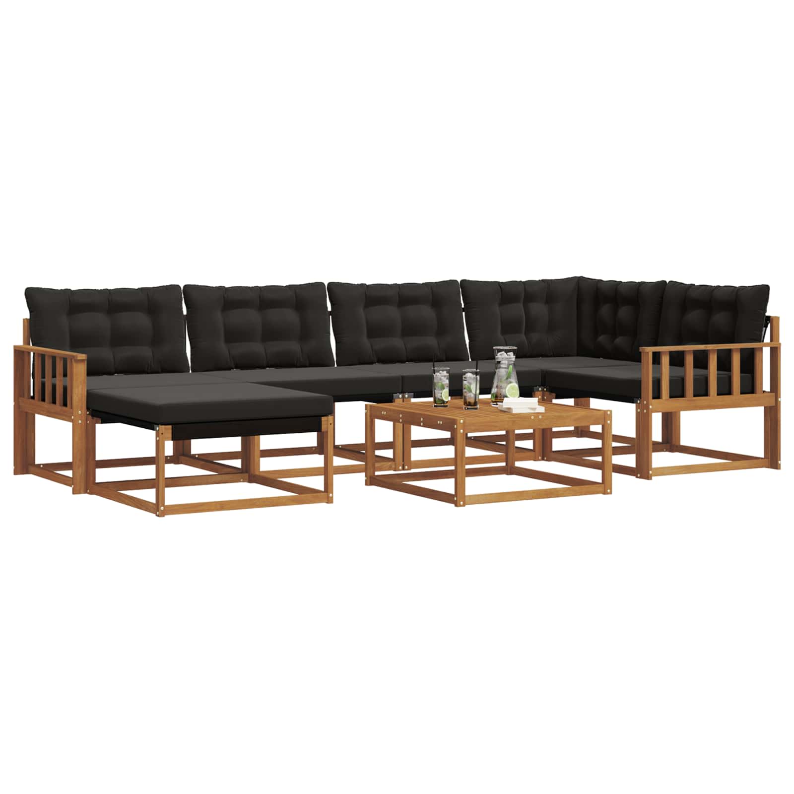 Ta soglasna sedežna garnitura lepo popestri vsak vrt ali teraso. Združuje udobje in stil ter je idealna za družinska srečanja. Trden akacijev les: Ta material dvigne videz seta in zagotavlja dolgo življenjsko dobo, ne glede na vreme. Naravni leseni toni se super zlijejo z zunanjim okoljem, kar ga naredi za brezčasno izbiro za vaš vrt ali teraso. Njegova odpornost proti obrabi ga naredi primerno za družabna srečanja in mirne trenutke. Integrirani elementi: Sofe imajo udobne naslone za roke in robusten okvir, oba narejena iz akacijevega lesa. Textilene hrbtne stene in debelo oblazinjene blazine nudijo dolgotrajno udobje. Snemljive sedežne blazine so z zadrgo, kar omogoča, da hitro in lahko očistite. Funkcionalne lastnosti: Zasnovan za uporabo na prostem, ta set je odporen na bledenje in enostaven za čiščenje, kar zagotavlja, da ostane videti nov. Naslon za hrbet podpori pravilno držo, medtem ko praktični nasloni za roke omogočajo udobno ležanje brez skrbi. Vsestrane uporabe: Ta sofa je odlična za različne zahteve, kot na primer zabave, piknike ali pa zgolj uživanje v mirnem večeru s knjigo. Njena zasnova se lepo dopolnjuje s sodobnimi prostori, kar jo naredi za odlično izbiro za digne ambient. Enostavno vzdrževanje: Da ohranite njen videz, jo enostavno obrišite z vlažno krpo. Ta preprosta rutina pomaga ohraniti vašo sedežno garnituro svežo skozi vse letne čase. Brez težav zaščitite svoj zunanji prostor in uživajte v dolgotrajnih druženjih.