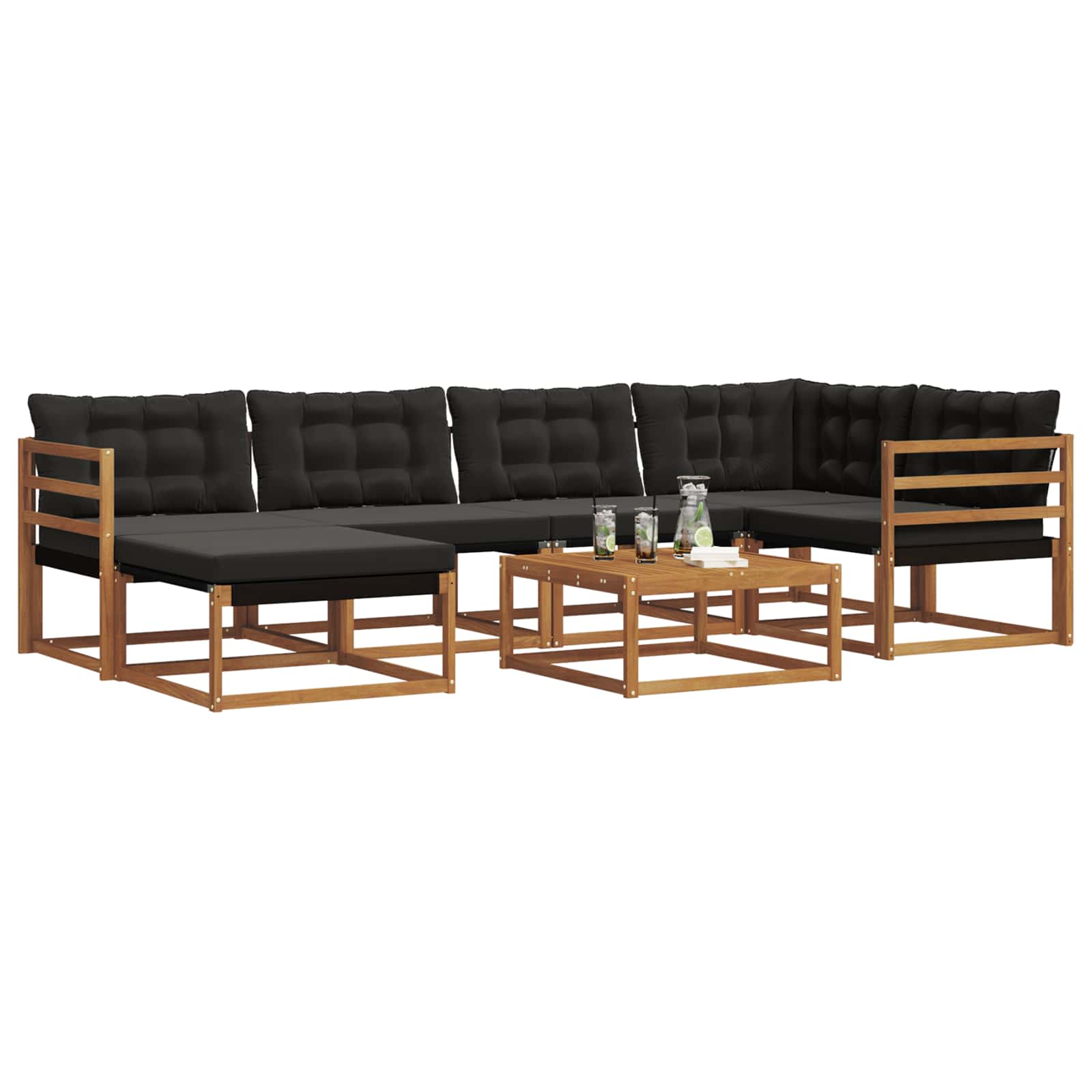 Ta soglasna sedežna garnitura lepo popestri vsak vrt ali teraso. Združuje udobje in stil ter je idealna za družinska srečanja. Trden akacijev les: Ta material dvigne videz seta in zagotavlja dolgo življenjsko dobo, ne glede na vreme. Naravni leseni toni se super zlijejo z zunanjim okoljem, kar ga naredi za brezčasno izbiro za vaš vrt ali teraso. Njegova odpornost proti obrabi ga naredi primerno za družabna srečanja in mirne trenutke. Integrirani elementi: Sofe imajo udobne naslone za roke in robusten okvir, oba narejena iz akacijevega lesa. Textilene hrbtne stene in debelo oblazinjene blazine nudijo dolgotrajno udobje. Snemljive sedežne blazine so z zadrgo, kar omogoča, da hitro in lahko očistite. Funkcionalne lastnosti: Zasnovan za uporabo na prostem, ta set je odporen na bledenje in enostaven za čiščenje, kar zagotavlja, da ostane videti nov. Naslon za hrbet podpori pravilno držo, medtem ko praktični nasloni za roke omogočajo udobno ležanje brez skrbi. Vsestrane uporabe: Ta sofa je odlična za različne zahteve, kot na primer zabave, piknike ali pa zgolj uživanje v mirnem večeru s knjigo. Njena zasnova se lepo dopolnjuje s sodobnimi prostori, kar jo naredi za odlično izbiro za digne ambient. Enostavno vzdrževanje: Da ohranite njen videz, jo enostavno obrišite z vlažno krpo. Ta preprosta rutina pomaga ohraniti vašo sedežno garnituro svežo skozi vse letne čase. Brez težav zaščitite svoj zunanji prostor in uživajte v dolgotrajnih druženjih.