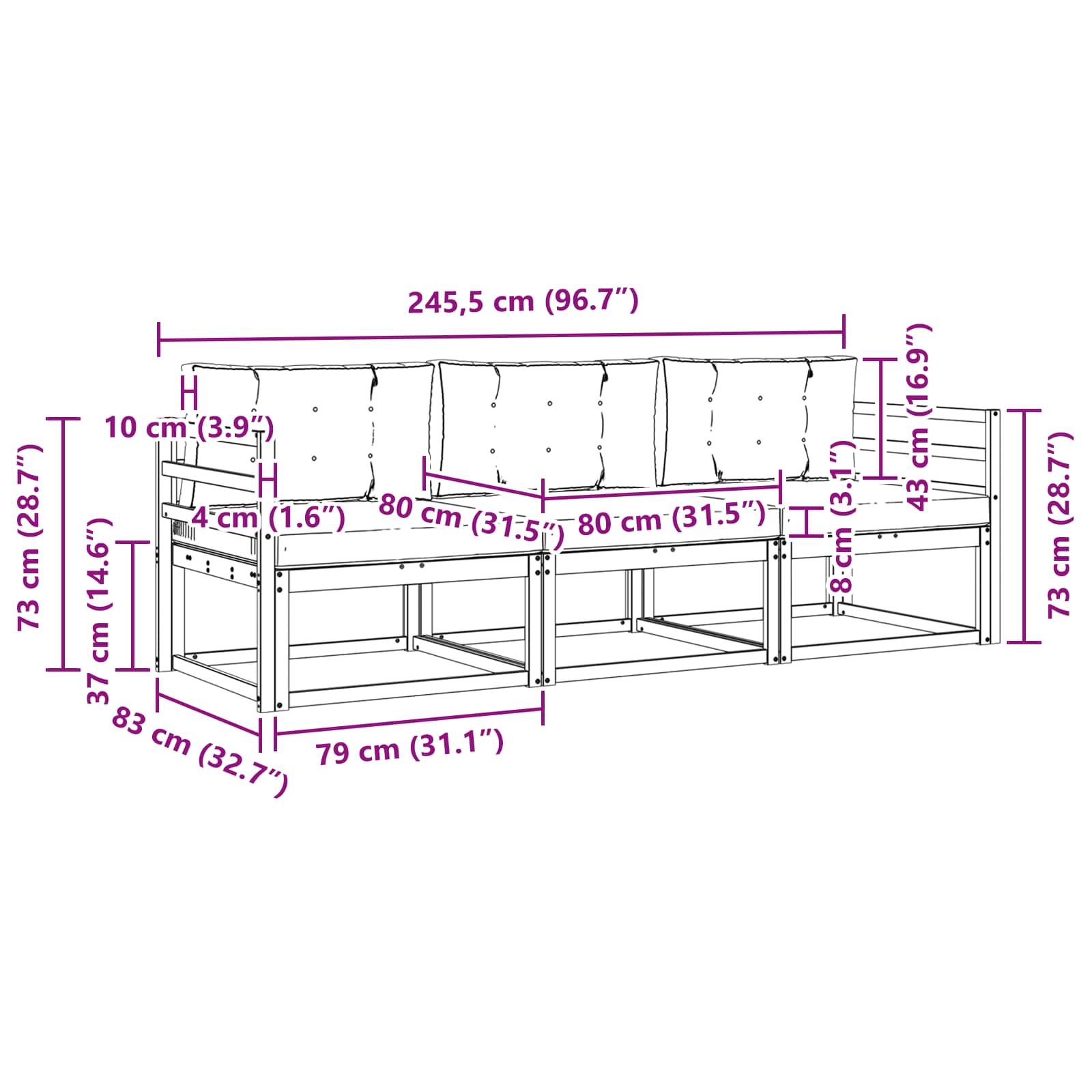 - 3 x hrbtna blazina: 80 x 43 x 10 cm (D x Š x V)
