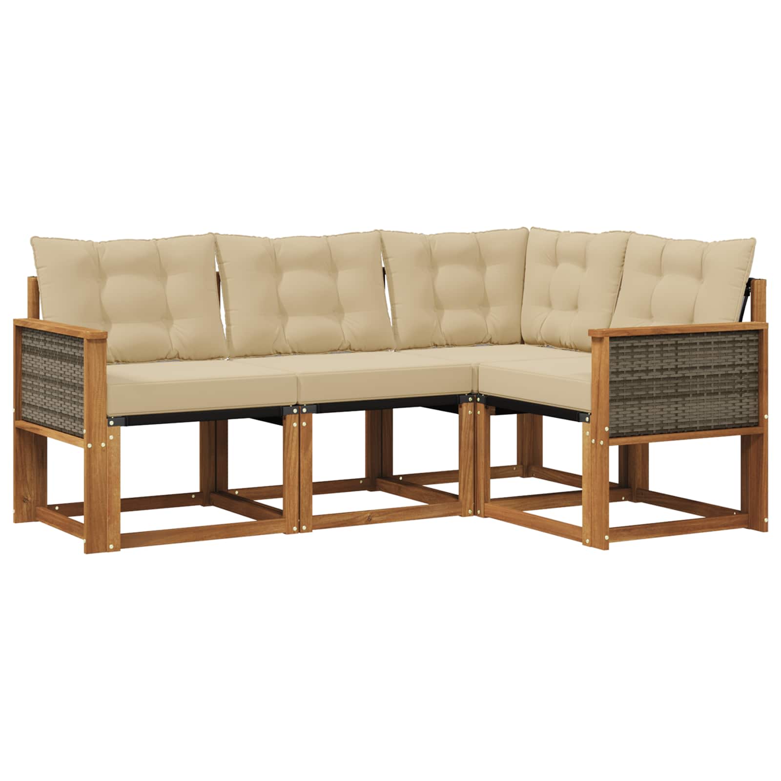 Ta zunanji pohištveni set združuje stil in funkcionalnost in je idealno središče za vsak vrt ali teraso. Njegov moderen dizajn z čistimi linijami in minimalističnimi detajli prinaša eleganco, hkrati pa ustvarja sproščujočo in družabno vzdušje na prostem. Narejen iz trdnega akacijevega lesa, set zagotavlja dolgotrajno vzdržljivost in lepoto, kar ga naredi za popolno izbiro za vsakogar, ki išče praktičnost in izjemen dizajn zunanjega pohištva. Vzdržljiv trden akacijev les: Ta zunanja pohištvena garnitura je znana po svoji vzdržljivosti in odpornosti. Močna konstrukcija nudi zanesljivo oporo in dolgo življenjsko dobo, medtem ko topli naravni ton obogati vsako okolico. Vremensko odporen dizajn: Lakirana površina zagotavlja dodatno zaščito pred soncem in rahlim dežjem. Polirana površina ohranja videz in funkcionalnost, kar zagotavlja dolgo življenjsko dobo za vaš vrt ali teraso. Komponente in dizajn: Vsak kos je zasnovan za slog in funkcijo. Podporni elementi nudijo dodatno udobje, kohezivni dizajn pa zagotavlja vizualno harmonijo, primerno za različna zunanja druženja. Udobje in prilagodljivost: Modularna zasnova omogoča prilagodljive nastavitve za različne potrebe. Idealen za sprostitev, družabne trenutke ali mirno branje, ta set se brez težav prilagaja kakršnemu koli prostoru in maksimira udobje. Enostavno vzdrževanje: Samo obrišite z vlažno krpo, da ohranite pohištvo v dobrem stanju. Izogibajte se agresivnim čistilom, redno vzdrževanje podaljša življenjsko dobo pohištva.