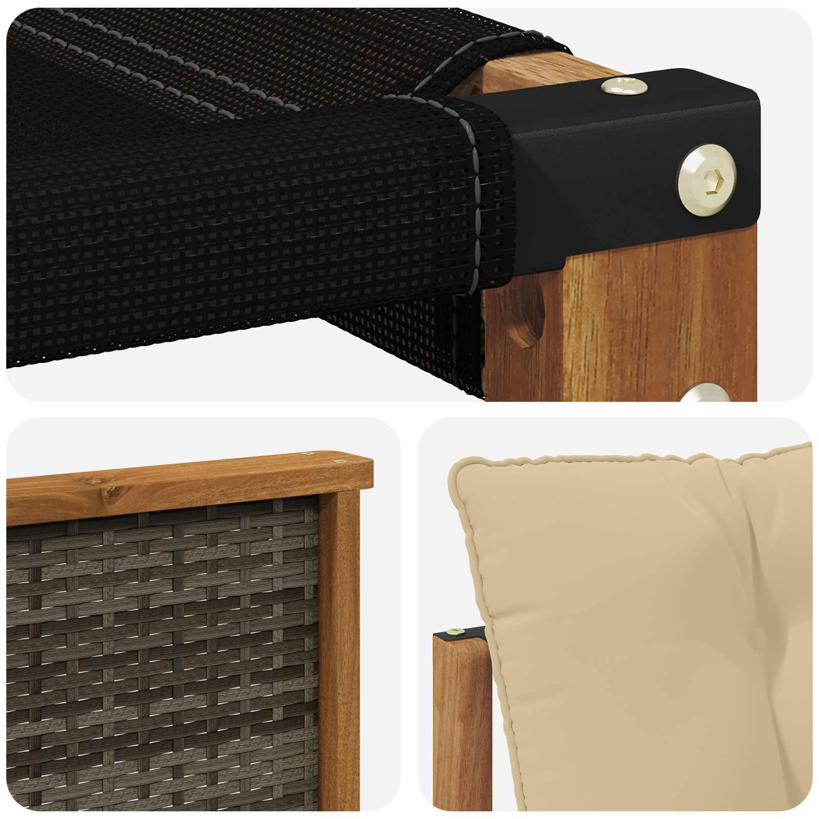 Ta moderna sedežna garnitura je prava izbira za vsak zunanji prostor. Ponuja eleganco in udobje, kar jo dela popolno za druženja ob vrtu ali sproščanje ob bazenu. Ima čist, sodoben oblikovan videz in minimalno okrasje, idealna je za prostore kot so vrtovi, terase ali dvorišča. Vse komponente, od blazin do naslonov, so skrbno oblikovane za udobje in sprostitev. To je resnična osrednja točka, ki vabi k druženju in prijetnim trenutkom. Trden akacijev les: Sedežna garnitura je narejena iz vrhunskega trdnega akacijevega lesa, ki je znan po svoji trpežnosti in estetiki. Ta les daje topel videz in zdrži zunanjo rabo, kar obljublja dolgo življenjsko dobo. Njegovi bogati, zemeljski toni lepo dopolnjujejo naravne elemente v vašem prostoru. Oblikovanje zunanjih blazin: Naša zunanja blazina je izdelana iz vremensko odpornih materialov, ki zdržijo sonce in vlago, kar zagotavlja dolgo uporabo. Debela podloga poskrbi za udobje, medtem ko zamenljive prevleke z zadrgo omogočajo enostavno čiščenje. Te blazine povečajo udobje in sprostitev. Enostavno čiščenje: Ohraniti to garnituro v odlični formi je preprosto, saj lahko krtačite površine. Vse površine, vključno z robustnim sedežem iz Textilena, se hitro očistijo z vlažno krpo, kar ohranja estetiko in delovanje tudi ob redni uporabi. Tako garnitura ostane privlačna in funkcionalna skozi leta. Funkcionalni naslon za roke: Nasloni so narejeni iz trdnega akacijevega lesa, kar nudi udobje med sprostitvijo in dodaja estetski pridih. Njihova zasnova je stabilna in udobna, kar omogoča prijetno izkušnjo sedenja. Lastnosti, usmerjene v udobje: Ta garnitura se prilagaja potrebam po sprostitvi, saj vključuje podporne naslone iz Textilena, znanega po svojem udobju. To zagotavlja prijetno podporo, kar jo dela odlično izbiro za sproščene trenutke, ne glede na to, ali ste sami ali v družbi.