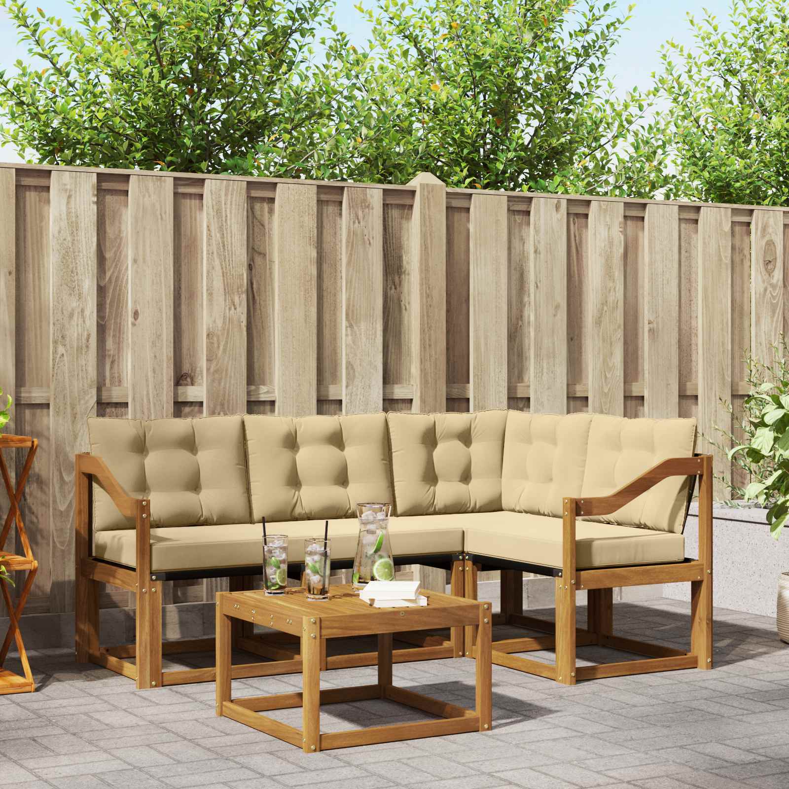 Ta moderni sedežni komplet brez truda dvigne vsak zunanji prostor. Primeren je za vrt, teraso, dvorišče ali ob bazenu in navdušuje s preprostim in funkcionalnim dizajnom. Čiste linije in minimalni okraski ustvarjajo ravnotežje med udobjem in elegantnim videzom. Materiali: Narejen iz kakovostnega akacijevega lesa, kar zagotavlja odpornost na zunanje dejavnike. Textilene sedežna površina pa nudi prijetno teksturo in je odporna na bledenje. Vključene komponente: Komplet vključuje odstranljive zunanje blazine, ki so pritrjene z zadrgami. Te blazine povečujejo udobje in olajšujejo nego, ohranjajoč privlačen videz skozi čas. Lastnosti / funkcija / dizajn: Uživajte v praktični mizi, zasnovani za odvajanje vode po dežju. Debele blazine obkrožajo udoben naslon, ki nudi luksuzno udobje pri druženju ali sprostitvi. Priporočene uporabe: Ta vsestranski komplet je odlična izbira za terase in dvorišča ter nudi prijetno okolje za goste ali mirne trenutke. Njegova prilagodljivost ga je primerna za različne dejavnosti na prostem. Negovanje in vzdrževanje: Zahtevana je le minimalna oskrba. Preprosto obrišite z vlažno krpo za čiščenje. Vremensko odporne blazine zagotavljajo dolgotrajno svežino in enostavno vzdrževanje skozi vse leto.