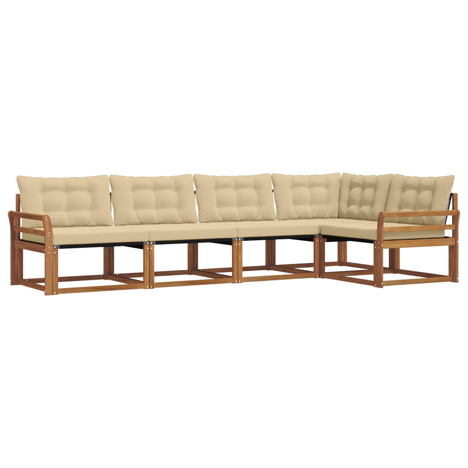 Ta moderna sedežna garnitura prinaša sprostitev na prostem z čistim stilom in neprekosljivim udobjem. Zasnovana za vrtne in terasne okolice, dviga vsak prostor s svojimi preprostimi linijami in naravno teksturo lesa. Idealna za druženja ali mirne večere, njena kombinacija materialov in izdelave zagotavlja tako trpežnost kot estetsko privlačnost. Premium materiali: Ta sedežna garnitura iz trdnega akacijevega lesa prinaša eleganco in robustnost. Tkanina Textilene je fleksibilna in omogoča udobje. Ti materiali skupaj prenašajo zunanje pogoje, zagotavljajo pa tudi dolgotrajnost brez izgube privlačnega videza. Lastnosti komponent: Vsak modul ima ergonomično naslonjalo za udobje. Trdni nasloni za roke s privlačnim lesnim vzorcem dodajajo vzdušje in stabilnost. Debelo oblazinjenje se enostavno odstrani za vzdrževanje in nudi udobje. Funkcionalnost: Modularna zasnova omogoča enostavno preureditev sedežnih postavitev. Barvno odporni materiali zagotavljajo, da se barva ohranja tudi pri izpostavljenosti soncu. Te funkcionalne komponente, ki so enostavne za čiščenje, olajšajo vzdrževanje na prostem. Namerna uporaba: Idealna za zunanjo uporabo, ta sedežna garnitura ustreza potrebam po sedenju, ne glede na to, ali gre za žur ali mirno poletno branje. Navodila za nego: Enostavno vzdrževanje vključuje brisanje z vlažno krpo za ohranjanje videza garniture. S pravilnim vzdrževanjem in rednim čiščenjem umazanije, njena dolgotrajnost in videz ostajata odlična za vsak prostor.
