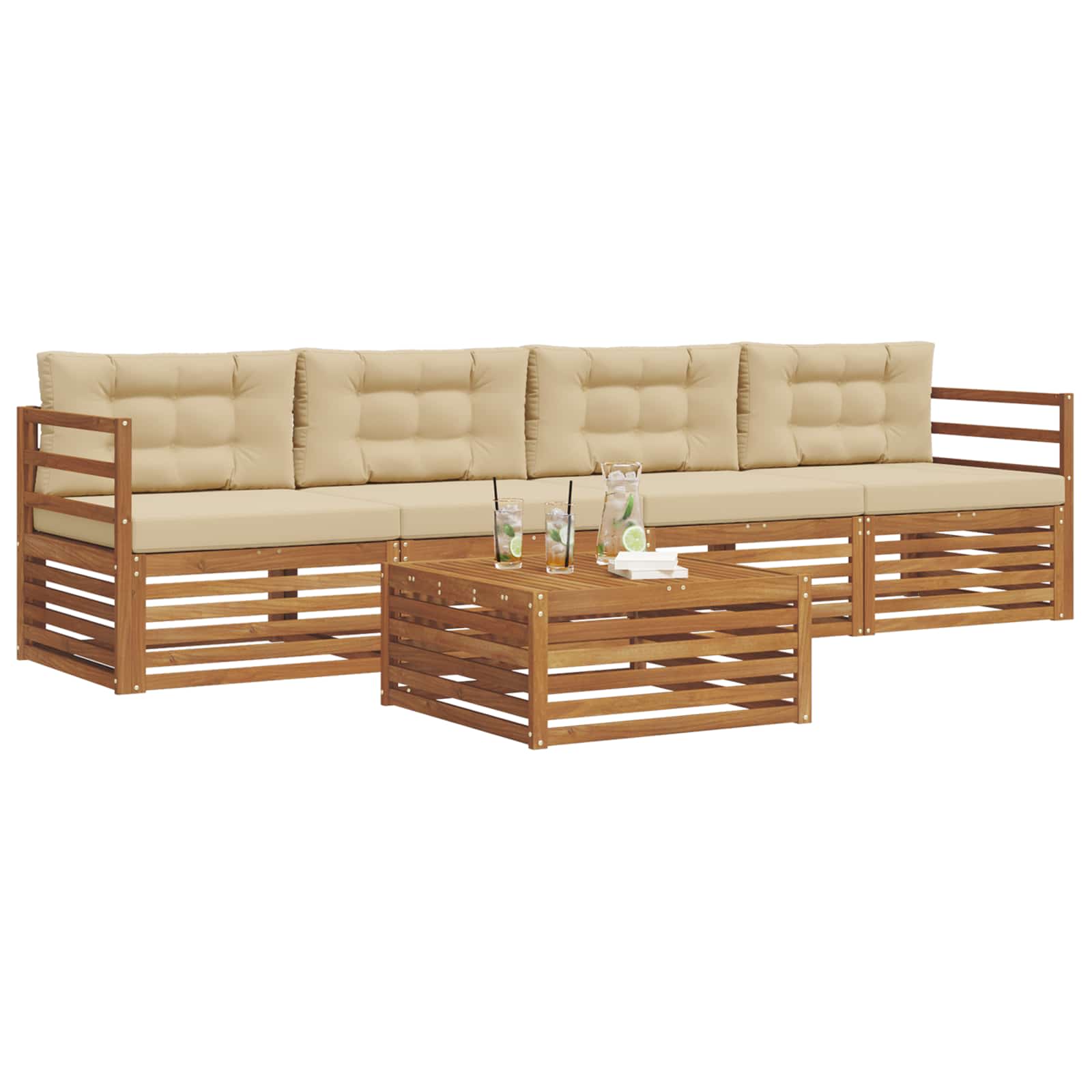 Set zunanjega pohištva združuje stil in funkcionalnost in je pravi osrednji del za vsak vrt ali teraso. Njegov moderni dizajn s čistimi linijami doda elegance in podpira sprostitev na prostem in druženje. Izdelan iz trdnega akacijevega lesa, ta set nudi trajnost in dolgoživost, kar ga postavlja na prvo mesto za vse, ki iščejo praktičnost z izpopolnjenim dizajnom zunanjega pohištva. Vzdržljiv trden akacijev les: Ta set zunanjega pohištva je narejen iz trdnega akacijevega lesa, znanega po svoji vzdržljivosti in odpornosti na razne vremenske dejavnike. Trdna konstrukcija zagotavlja dolgo življensko dobo in zaupanje, obenem pa naravna barva obogati vaš vrt ali teraso. Oblikovanje, odporno na vreme: Lakirana površina nudi zaščito pred soncem in rahlim dežjem. Polirana površina ohrani videz in funkcionalnost ter podaljša življenjsko dobo pohištva na vaši terasi ali dvorišču. Komponente in oblikovanje: Vsak kos pohištva, od naslonjal do okvirjev, je zasnovan za stil in udobje. Podporne funkcije ponujajo dodaten komfort, medtem ko celotna zasnova zagotavlja vizualno kohezijo, kar je primerno za razne zunanje priložnosti. Udobje in prilagodljivost: Modularni dizajn omogoča različne nastavitve, primerne za vsako priložnost. Super za sprostitev, družabne dogodke ali mirno branje, ta set se brez napora prilagodi vsaki zunanji okolici. Enostavno vzdrževanje in skrb: Da ohranite pohištvo v top stanju, ga lahko obrišete z vlažno krpo in se izogibate ostrim čistilom. Redno vzdrževanje pomaga podaljšati življenjsko dobo in ohraniti videz pohištva.