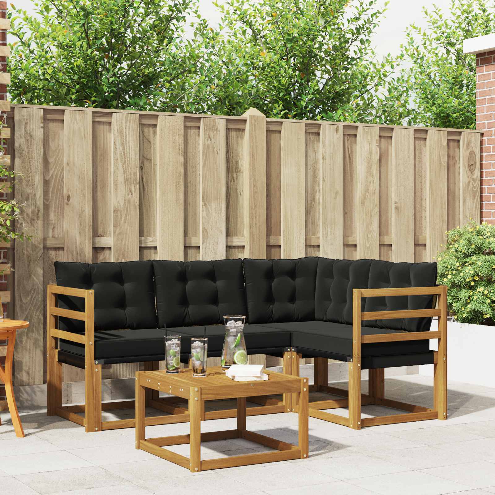 Ta moderni sedežni komplet brez truda dvigne vsak zunanji prostor. Primeren je za vrt, teraso, dvorišče ali ob bazenu in navdušuje s preprostim in funkcionalnim dizajnom. Čiste linije in minimalni okraski ustvarjajo ravnotežje med udobjem in elegantnim videzom. Materiali: Narejen iz kakovostnega akacijevega lesa, kar zagotavlja odpornost na zunanje dejavnike. Textilene sedežna površina pa nudi prijetno teksturo in je odporna na bledenje. Vključene komponente: Komplet vključuje odstranljive zunanje blazine, ki so pritrjene z zadrgami. Te blazine povečujejo udobje in olajšujejo nego, ohranjajoč privlačen videz skozi čas. Lastnosti / funkcija / dizajn: Uživajte v praktični mizi, zasnovani za odvajanje vode po dežju. Debele blazine obkrožajo udoben naslon, ki nudi luksuzno udobje pri druženju ali sprostitvi. Priporočene uporabe: Ta vsestranski komplet je odlična izbira za terase in dvorišča ter nudi prijetno okolje za goste ali mirne trenutke. Njegova prilagodljivost ga je primerna za različne dejavnosti na prostem. Negovanje in vzdrževanje: Zahtevana je le minimalna oskrba. Preprosto obrišite z vlažno krpo za čiščenje. Vremensko odporne blazine zagotavljajo dolgotrajno svežino in enostavno vzdrževanje skozi vse leto.