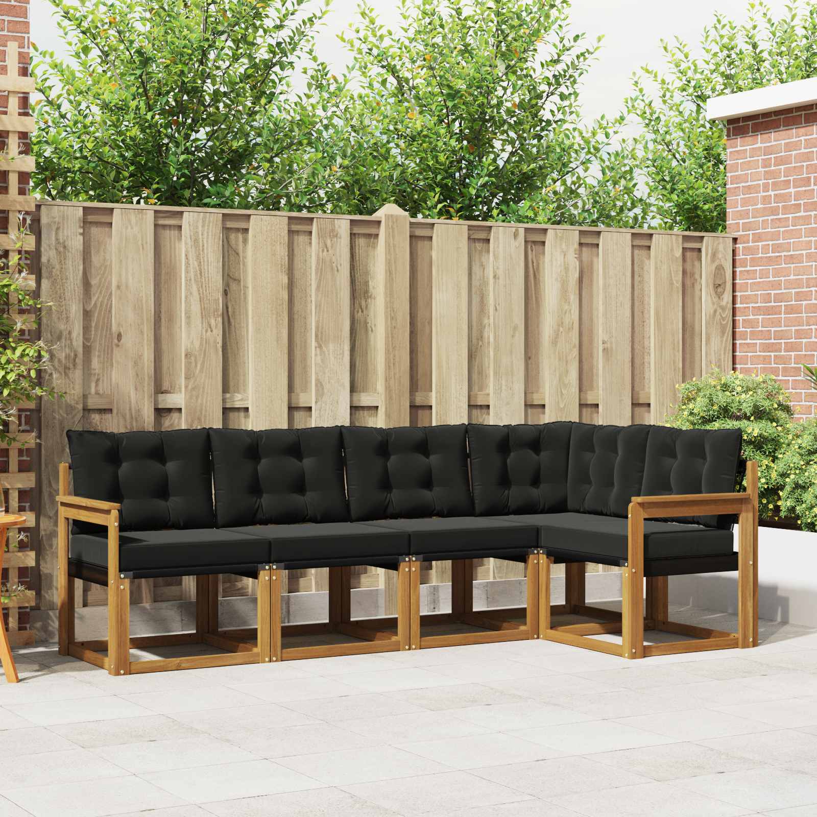 Ta moderna sedežna garnitura je prava izbira za vsak zunanji prostor. Ponuja eleganco in udobje, kar jo dela popolno za druženja ob vrtu ali sproščanje ob bazenu. Ima čist, sodoben oblikovan videz in minimalno okrasje, idealna je za prostore kot so vrtovi, terase ali dvorišča. Vse komponente, od blazin do naslonov, so skrbno oblikovane za udobje in sprostitev. To je resnična osrednja točka, ki vabi k druženju in prijetnim trenutkom. Trden akacijev les: Sedežna garnitura je narejena iz vrhunskega trdnega akacijevega lesa, ki je znan po svoji trpežnosti in estetiki. Ta les daje topel videz in zdrži zunanjo rabo, kar obljublja dolgo življenjsko dobo. Njegovi bogati, zemeljski toni lepo dopolnjujejo naravne elemente v vašem prostoru. Oblikovanje zunanjih blazin: Naša zunanja blazina je izdelana iz vremensko odpornih materialov, ki zdržijo sonce in vlago, kar zagotavlja dolgo uporabo. Debela podloga poskrbi za udobje, medtem ko zamenljive prevleke z zadrgo omogočajo enostavno čiščenje. Te blazine povečajo udobje in sprostitev. Enostavno čiščenje: Ohraniti to garnituro v odlični formi je preprosto, saj lahko krtačite površine. Vse površine, vključno z robustnim sedežem iz Textilena, se hitro očistijo z vlažno krpo, kar ohranja estetiko in delovanje tudi ob redni uporabi. Tako garnitura ostane privlačna in funkcionalna skozi leta. Funkcionalni naslon za roke: Nasloni so narejeni iz trdnega akacijevega lesa, kar nudi udobje med sprostitvijo in dodaja estetski pridih. Njihova zasnova je stabilna in udobna, kar omogoča prijetno izkušnjo sedenja. Lastnosti, usmerjene v udobje: Ta garnitura se prilagaja potrebam po sprostitvi, saj vključuje podporne naslone iz Textilena, znanega po svojem udobju. To zagotavlja prijetno podporo, kar jo dela odlično izbiro za sproščene trenutke, ne glede na to, ali ste sami ali v družbi.