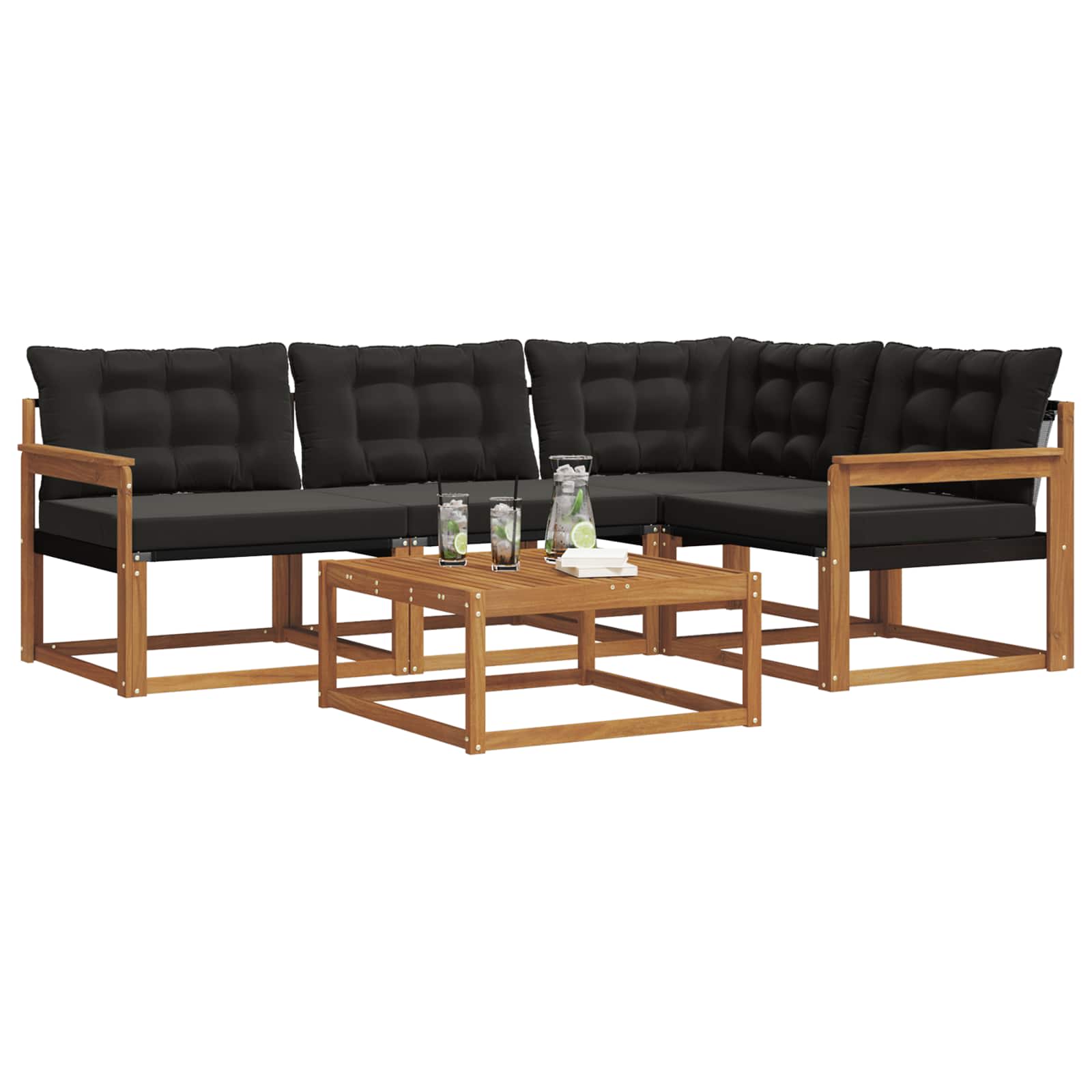 Ta moderna garnitura za sedenje je odlična izbira za izboljšanje vašega zunanjega prostora, saj nudi stil in funkcionalnost. S svojo preprosto zasnovo in robustno konstrukcijo se lepo poda vsakemu vrtu ali terasi. Uporabite jo za organizacijo srečanj ali za uživanje v mirnih trenutkih, ker nudi udobno sedenje in estetsko privlačnost. Okvir iz trdnega akacijevega lesa: Garnitura ima trden okvir iz akacijevega lesa, ki je znan po svoji vzdržljivosti in naravni teksturi, kar lepo dopolnjuje zunanji ambient. Njegova bogata barva daje topel in prijeten videz ter nudi moč za vsakodnevno uporabo. Udoben Textilene: Tkanina Textilene v blazinah in naslonjalu nudi dihljivo udobje in je odporna na bledenje in obrabo. Ta izbira materiala zagotavlja svež in udoben občutek, idealen za sproščanje na prostem. Modularna prilagodljivost: Modularna zasnova garniture omogoča različne sedežne postavitve, kar zagotavlja prilagodljivost za vsa zunanjska srečanja. Enostavno preuredite kose in ustvarite unikatne nastavitve za majhne in velike skupine. Vremensko odporne komponente: Z vremensko odpornimi blazinami in materiali, zasnovanimi za zunanjo uporabo, garnitura zdrži vlažnost in UV žarke. Vsaka komponenta je zasnovana tako, da prenese različne vremenske dejavnike. Preprosto vzdrževanje: Garnitura zahteva minimalno skrb; le obrišite z vlažno krpo, da ohranite njen videz. Enostavna oskrba za prijetno zunanje mesto za sedenje.