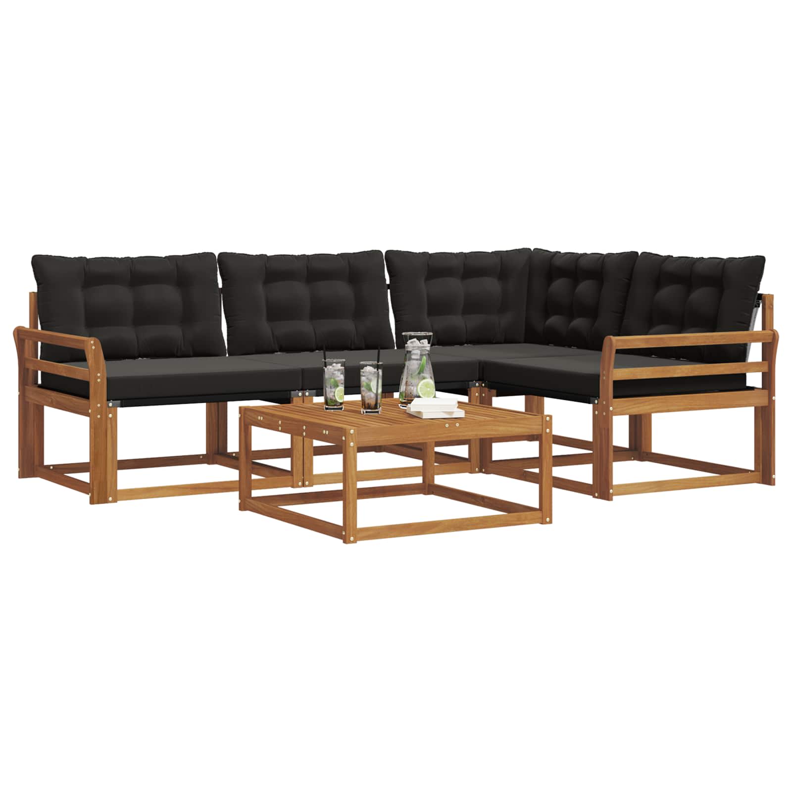 Ta moderna garnitura za sedenje je odlična izbira za izboljšanje vašega zunanjega prostora, saj nudi stil in funkcionalnost. S svojo preprosto zasnovo in robustno konstrukcijo se lepo poda vsakemu vrtu ali terasi. Uporabite jo za organizacijo srečanj ali za uživanje v mirnih trenutkih, ker nudi udobno sedenje in estetsko privlačnost. Okvir iz trdnega akacijevega lesa: Garnitura ima trden okvir iz akacijevega lesa, ki je znan po svoji vzdržljivosti in naravni teksturi, kar lepo dopolnjuje zunanji ambient. Njegova bogata barva daje topel in prijeten videz ter nudi moč za vsakodnevno uporabo. Udoben Textilene: Tkanina Textilene v blazinah in naslonjalu nudi dihljivo udobje in je odporna na bledenje in obrabo. Ta izbira materiala zagotavlja svež in udoben občutek, idealen za sproščanje na prostem. Modularna prilagodljivost: Modularna zasnova garniture omogoča različne sedežne postavitve, kar zagotavlja prilagodljivost za vsa zunanjska srečanja. Enostavno preuredite kose in ustvarite unikatne nastavitve za majhne in velike skupine. Vremensko odporne komponente: Z vremensko odpornimi blazinami in materiali, zasnovanimi za zunanjo uporabo, garnitura zdrži vlažnost in UV žarke. Vsaka komponenta je zasnovana tako, da prenese različne vremenske dejavnike. Preprosto vzdrževanje: Garnitura zahteva minimalno skrb; le obrišite z vlažno krpo, da ohranite njen videz. Enostavna oskrba za prijetno zunanje mesto za sedenje.
