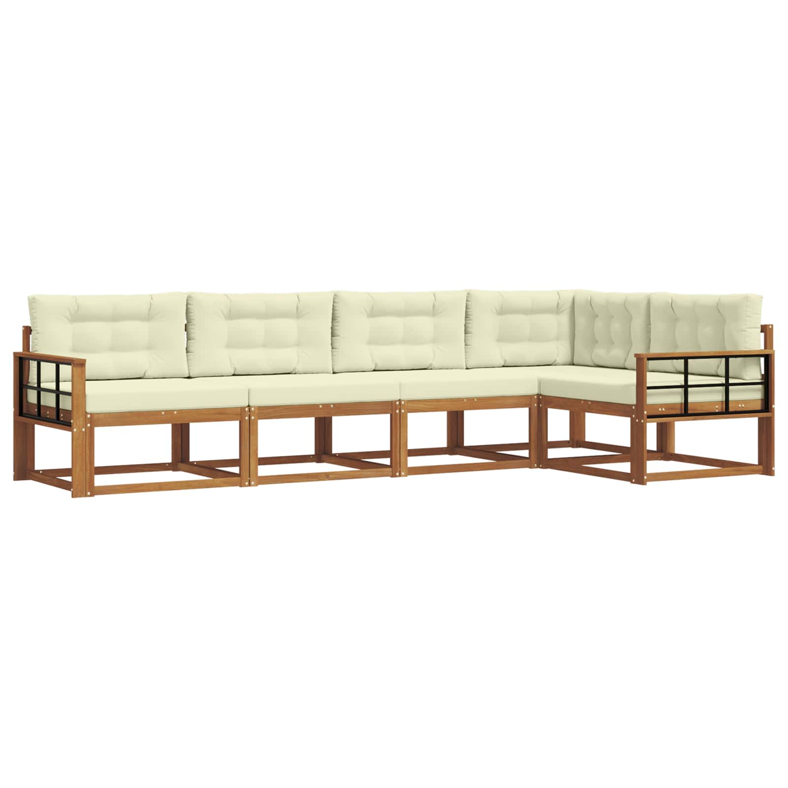 Ta zunanji sekcionalni kavč privlačno združuje stil in funkcionalnost, kar vašemu vrtu, terasi ali kateremkoli zunanjem prostoru doda odličen pridih za sprostitev in zabavo. Čiste linije in minimalističen dizajn mu dajo sodoben videz, ki se odlično prilega sončnim jutrom ali prijetnim večerom. Naravna rjava barva se enostavno zlije z različnimi okolji in doda sofisticiran videz, gostje pa bodo vabili, da se udobno namestijo. Kvaliteten akacijev les Odličen trden akacijev les poskrbi za trajnost in dolgotrajno uporabo, tako da vaš zunanji prostor ostaja privlačen in eleganten. Njegova robustna narava zagotavlja stabilnost, zato je super za dolgotrajno zunanjo uporabo. Letvičast dizajn Uživajte v udobju z letvičastim naslonom, ki ponuja eleganco in praktičnost. Dobro načrtovane letvice zagotavljajo dobro zračenje in udobno izkušnjo, tudi ko je vroče. Praktična naslonjala Ta set ima kakovostna naslonjala iz akacije, ki nudijo dodatno udobje in boljši oprijem. Oblikovana so tako, da podpirajo sproščene trenutke, ne glede na to, ali berete ali klepetate. Modularna prilagodljivost Kavč se enostavno prilagaja različnim postavitvam in potrebam. Spremenite razporeditev po potrebi in poskrbite, da vam bo vaš zunanji prostor ustrezal za vsako družabno priložnost, od intimnih pogovorov do večjih praznovanj. Enostavno vzdrževanje Da ohranite videz seta, ga obrišite z vlažno krpo. Previdno ga zaščitite pred močno sončno svetlobo, ko ga ne uporabljate, da podaljšate njegovo življenjsko dobo. Tako bo ta eleganten kos še leta osrednja točka vašega zunanjega prostora.