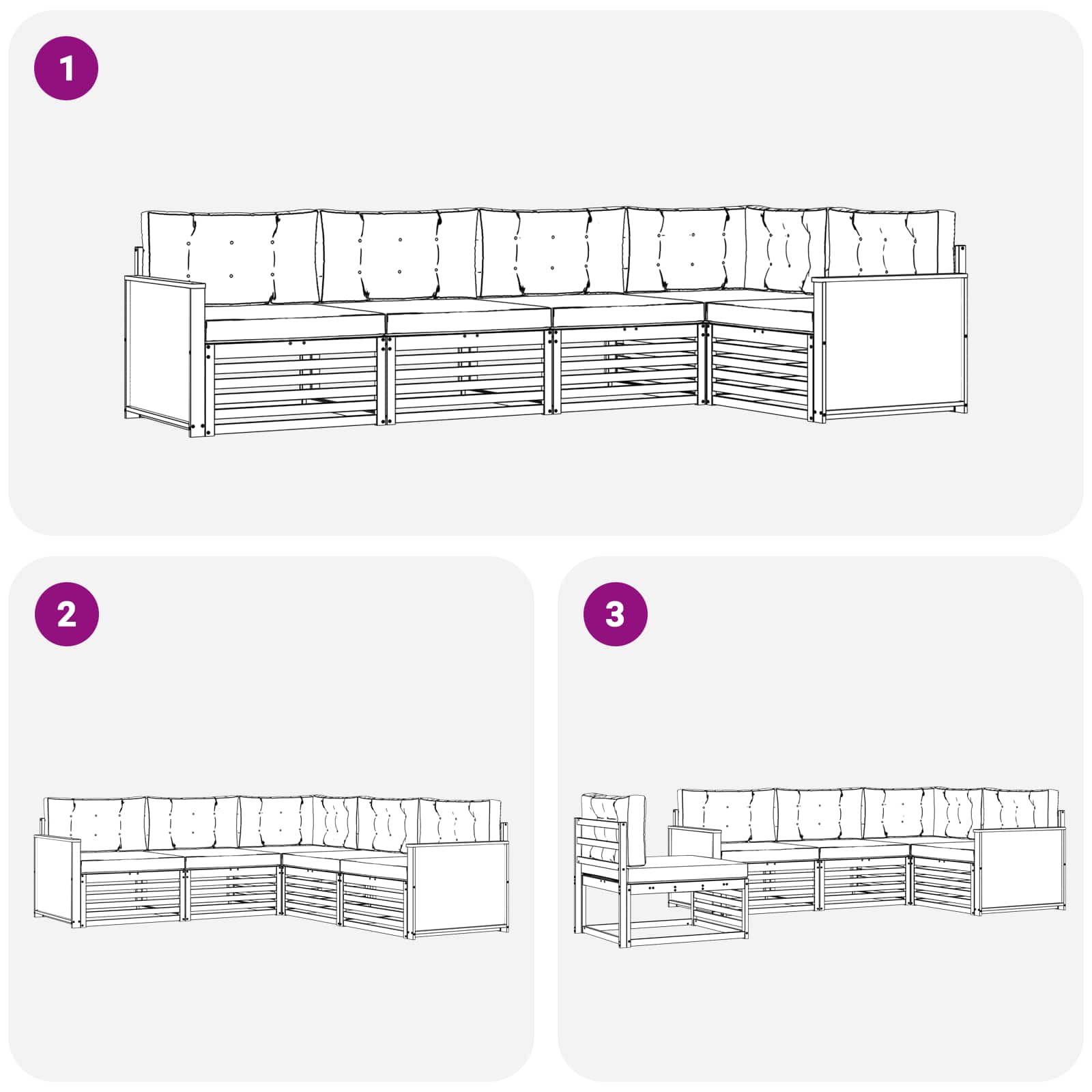 Set zunanjega pohištva združuje stil in funkcionalnost ter ustvarja osupljivo središče za vsak vrt ali teraso. Njegova moderna zasnova s čistimi linijami in minimalno obdelavo doda eleganco in je primerna za sprostitev na prostem ter druženje s prijatelji. Izdelan je iz čistega trdnega akacijevega lesa, kar mu daje dolgotrajno estetsko privlačnost in je odlična izbira za tiste, ki iščejo praktičnost in lepo obliko v zunanjih prostorih. Vzdržljiv trd akacijev les: Ta set je izdelan iz trdnega akacijevega lesa, ki je znan po svoji dolgotrajnosti in odpornosti. Močna konstrukcija nudi zanesljivo podporo in stabilnost, medtem ko naravni topli odtenek lepo dopolnjuje vsak vrt ali teraso. Oblikovanje, odporne na vreme: Ta set je lakiran za dodatno zaščito pred soncem in dežjem. Polirana površina ohranja videz in funkcionalnost, kar zagotavlja dolgotrajno vzdržljivost na vašem vrtu, terasi ali dvorišču. Komponente in dizajn: Vsak del, od naslonov do hrbtov, je zasnovan za stil in funkcionalnost. Naslon prinaša dodatno udobje, medtem ko celoten dizajn ustvarja vizualno harmoničen sklop za različne priložnosti na prostem. Udobje in vsestranskost: Modularna zasnova omogoča različne nastavitve, ki se prilagajajo potrebam prostora. Odličen je za sprostitev, druženje ali branje, saj se ta set prilagaja zunanjemu okolju ter maksimizira udobje in uporabnost. Enostavna nega in vzdrževanje: Da ohranite pohištvo v dobrem stanju, površino le obrišite z vlažno krpo in se izogibajte močnim čistilom. Redno vzdrževanje podaljša življenjsko dobo in ohrani videz pohištva.