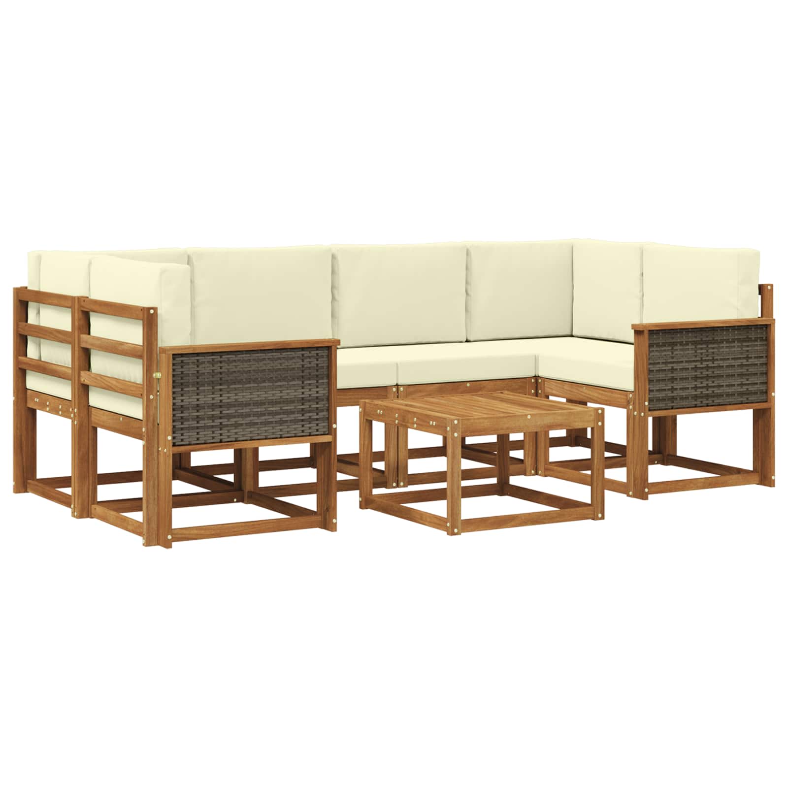 Zunanji kotni sedežni set je zasnovan za popestritev zunanjih prostorov s svojim modernim in funkcionalnim stilom. Zelo je primeren za vrtove, terase in obmorske površine in se ponaša s preprostostjo in čistimi linijami. Uporablja trdi akacijev les, ki s svojo bogato rjavo barvo dodaja naravno toplino. Idealno je za druženja ali sproščanje, njegove modularne sekcije omogočajo prilagodljive sedežne postavitve, kar uporabnikom omogoča, da prilagodijo nastavitve glede na prostor in potrebe. Trden akacijev les: Sedežni set je narejen iz trdega akacijevega lesa, ki slovi po vzdržljivosti in naravni lepoti. Njegova robustna struktura je odporna na vremenske razmere, kar ga naredi idealnega za zunanjo rabo skozi vse leto. Modularna zasnova: Set omogoča fleksibilne postavitve, ki ustrezajo različnim prostorom in funkcijam. Ne glede na to, ali potrebujete udobno kotno postavitev ali prostor za večjo družbo, ta fleksibilnost je super dopolnilo za vsak zunanji prostor. Rešetkasta zasnova: Rešetkasta hrbtna stran in okvir dodajata sodoben videz in zagotavljata odlično ventilacijo, kar je super za ohranjanje lesa. Zmanjšuje potrebo po vzdrževanju in izboljšuje estetiko. Nasloni za roke ter udobnost: Akacijevi nasloni za roke nudijo odlično podporo, kar omogoča prijetno izkušnjo pri sedenju. Rešetkasti nasloni zagotavljajo udobje, idealno za dolgotrajno uporabo. Učinkovitost in vzdrževanje: Kljub naravni odpornosti, akacijev les potrebuje malo nege. Pokrijte ga, ko ni v uporabi, in obrišite z vlažno krpo, da ostane v dobrem stanju. S tem podaljšate njegovo življenje in užitek v njem.