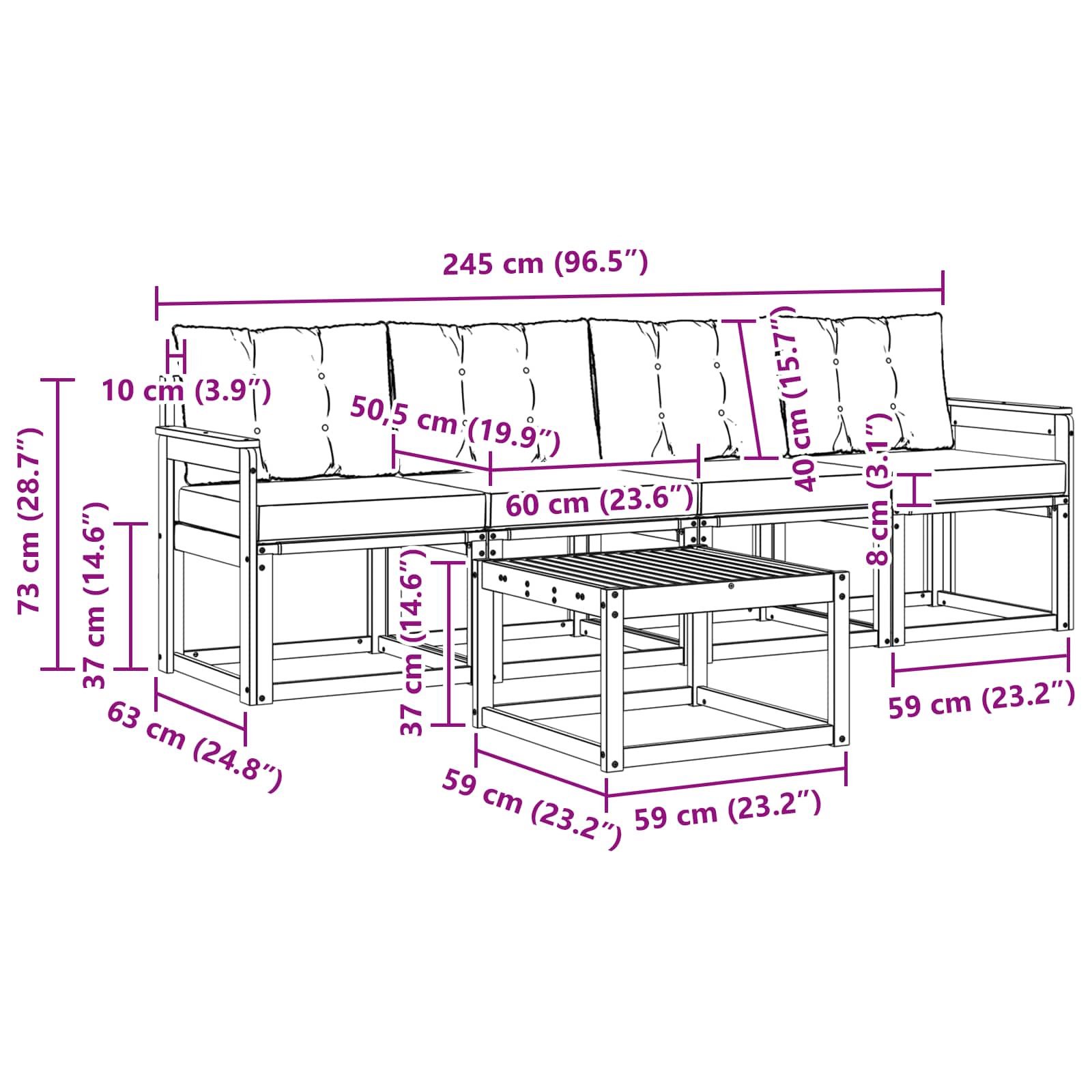 - 4 x Srednji kavč: 59 x 63 x 73 cm (D x Š x V)