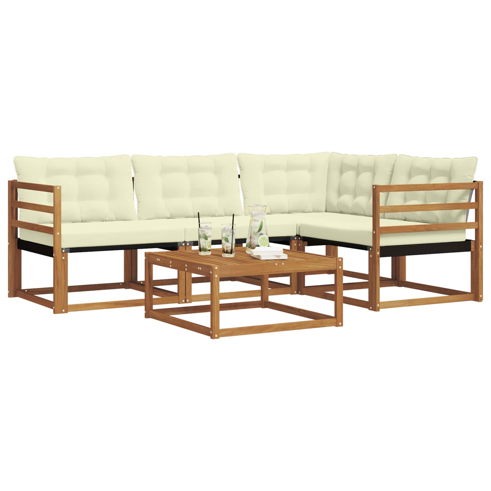 Ta moderna garnitura za sedenje je odlična izbira za izboljšanje vašega zunanjega prostora, saj nudi stil in funkcionalnost. S svojo preprosto zasnovo in robustno konstrukcijo se lepo poda vsakemu vrtu ali terasi. Uporabite jo za organizacijo srečanj ali za uživanje v mirnih trenutkih, ker nudi udobno sedenje in estetsko privlačnost. Okvir iz trdnega akacijevega lesa: Garnitura ima trden okvir iz akacijevega lesa, ki je znan po svoji vzdržljivosti in naravni teksturi, kar lepo dopolnjuje zunanji ambient. Njegova bogata barva daje topel in prijeten videz ter nudi moč za vsakodnevno uporabo. Udoben Textilene: Tkanina Textilene v blazinah in naslonjalu nudi dihljivo udobje in je odporna na bledenje in obrabo. Ta izbira materiala zagotavlja svež in udoben občutek, idealen za sproščanje na prostem. Modularna prilagodljivost: Modularna zasnova garniture omogoča različne sedežne postavitve, kar zagotavlja prilagodljivost za vsa zunanjska srečanja. Enostavno preuredite kose in ustvarite unikatne nastavitve za majhne in velike skupine. Vremensko odporne komponente: Z vremensko odpornimi blazinami in materiali, zasnovanimi za zunanjo uporabo, garnitura zdrži vlažnost in UV žarke. Vsaka komponenta je zasnovana tako, da prenese različne vremenske dejavnike. Preprosto vzdrževanje: Garnitura zahteva minimalno skrb; le obrišite z vlažno krpo, da ohranite njen videz. Enostavna oskrba za prijetno zunanje mesto za sedenje.