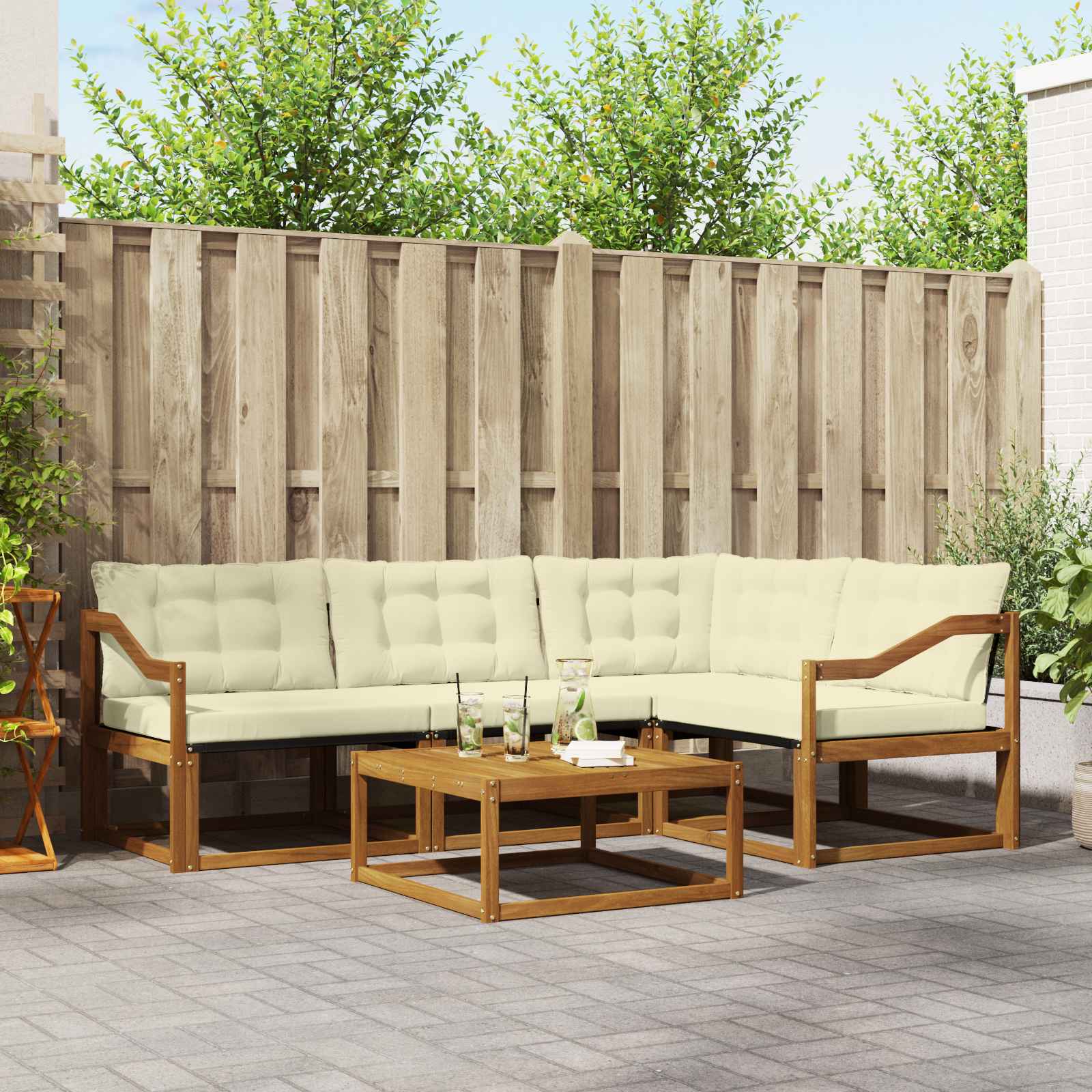 Ta moderna garnitura za sedenje je odlična izbira za izboljšanje vašega zunanjega prostora, saj nudi stil in funkcionalnost. S svojo preprosto zasnovo in robustno konstrukcijo se lepo poda vsakemu vrtu ali terasi. Uporabite jo za organizacijo srečanj ali za uživanje v mirnih trenutkih, ker nudi udobno sedenje in estetsko privlačnost. Okvir iz trdnega akacijevega lesa: Garnitura ima trden okvir iz akacijevega lesa, ki je znan po svoji vzdržljivosti in naravni teksturi, kar lepo dopolnjuje zunanji ambient. Njegova bogata barva daje topel in prijeten videz ter nudi moč za vsakodnevno uporabo. Udoben Textilene: Tkanina Textilene v blazinah in naslonjalu nudi dihljivo udobje in je odporna na bledenje in obrabo. Ta izbira materiala zagotavlja svež in udoben občutek, idealen za sproščanje na prostem. Modularna prilagodljivost: Modularna zasnova garniture omogoča različne sedežne postavitve, kar zagotavlja prilagodljivost za vsa zunanjska srečanja. Enostavno preuredite kose in ustvarite unikatne nastavitve za majhne in velike skupine. Vremensko odporne komponente: Z vremensko odpornimi blazinami in materiali, zasnovanimi za zunanjo uporabo, garnitura zdrži vlažnost in UV žarke. Vsaka komponenta je zasnovana tako, da prenese različne vremenske dejavnike. Preprosto vzdrževanje: Garnitura zahteva minimalno skrb; le obrišite z vlažno krpo, da ohranite njen videz. Enostavna oskrba za prijetno zunanje mesto za sedenje.