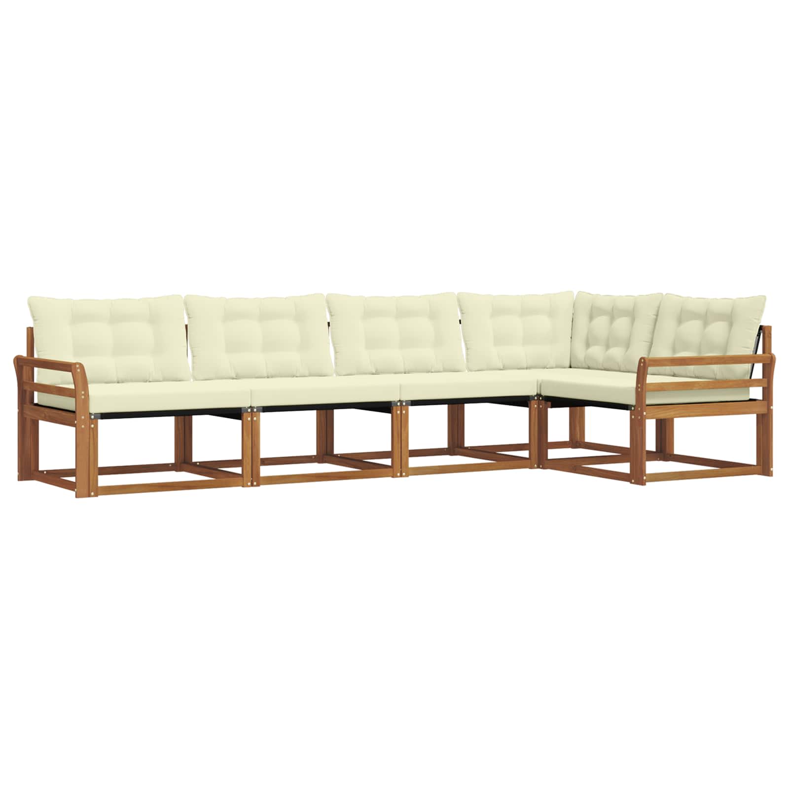 Ta moderna sedežna garnitura prinaša sprostitev na prostem z čistim stilom in neprekosljivim udobjem. Zasnovana za vrtne in terasne okolice, dviga vsak prostor s svojimi preprostimi linijami in naravno teksturo lesa. Idealna za druženja ali mirne večere, njena kombinacija materialov in izdelave zagotavlja tako trpežnost kot estetsko privlačnost. Premium materiali: Ta sedežna garnitura iz trdnega akacijevega lesa prinaša eleganco in robustnost. Tkanina Textilene je fleksibilna in omogoča udobje. Ti materiali skupaj prenašajo zunanje pogoje, zagotavljajo pa tudi dolgotrajnost brez izgube privlačnega videza. Lastnosti komponent: Vsak modul ima ergonomično naslonjalo za udobje. Trdni nasloni za roke s privlačnim lesnim vzorcem dodajajo vzdušje in stabilnost. Debelo oblazinjenje se enostavno odstrani za vzdrževanje in nudi udobje. Funkcionalnost: Modularna zasnova omogoča enostavno preureditev sedežnih postavitev. Barvno odporni materiali zagotavljajo, da se barva ohranja tudi pri izpostavljenosti soncu. Te funkcionalne komponente, ki so enostavne za čiščenje, olajšajo vzdrževanje na prostem. Namerna uporaba: Idealna za zunanjo uporabo, ta sedežna garnitura ustreza potrebam po sedenju, ne glede na to, ali gre za žur ali mirno poletno branje. Navodila za nego: Enostavno vzdrževanje vključuje brisanje z vlažno krpo za ohranjanje videza garniture. S pravilnim vzdrževanjem in rednim čiščenjem umazanije, njena dolgotrajnost in videz ostajata odlična za vsak prostor.