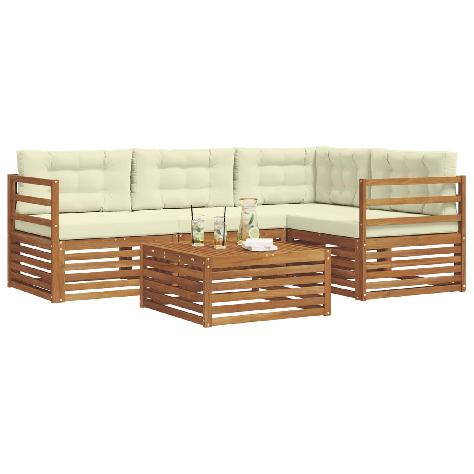 Komplet zunanjega pohištva združuje stil in funkcionalnost ter se lepo prilega vsakemu vrtu ali terasi. Njegova moderna zasnova s čistimi linijami in minimalno okrasjem dodaja eleganco ter omogoča sprostitev in druženje na prostem. Celega ga izdelajo iz trdnega akacijevega lesa, kar zagotavlja trpežnost in dolgotrajno privlačnost, kar je popolna izbira za tiste, ki iščejo praktično, a tudi lepo pohištvo za na prostem. Vzdržljiv trden akacijev les: Ta set je izdelan iz trdnega akacijevega lesa, poznanega po svoji trpežnosti in odpornosti na zunanje dejavnike. Stabilna konstrukcija nudi zanesljivo oporo in dolgotrajno stabilnost, naravna barva pa obogati vsak vrt ali teraso. Oblikovanje, odporno na vreme: Set ima lakirano površino, ki ponuja dodatno zaščito pred soncem in dežjem ter okoljskimi vplivi. Polirana obdelava ohranja privlačnost in funkcionalnost, kar zagotavlja dolgotrajno trpežnost za vaš vrt ali dvorišče. Komponente in zasnova: Vsak del, od naslonov do sedežnih površin, je zasnovan za estetiko in udobje. Opora nudi dodatno udobje ter ustvarja usklajen dizajn, primeren za razne zunanje dogodke. Udobje in vsestranskost: Modularna zasnova omogoča prilagodljive konfiguracije, ki ustrezajo vašim potrebam. Idealno za sprostitev, družabna srečanja ali mirno branje, ta set se zlahka prilagodi vsakemu zunanjemu okolju in maksimira udobje. Enostavna nega in vzdrževanje: Vzdrževanje pohištva je enostavno, dovolj je, da ga obrišite z vlažno krpo in se izogibate ostrim čistilom. Redna nega ohranja njegov videz in podaljšuje življenjsko dobo pohištva.