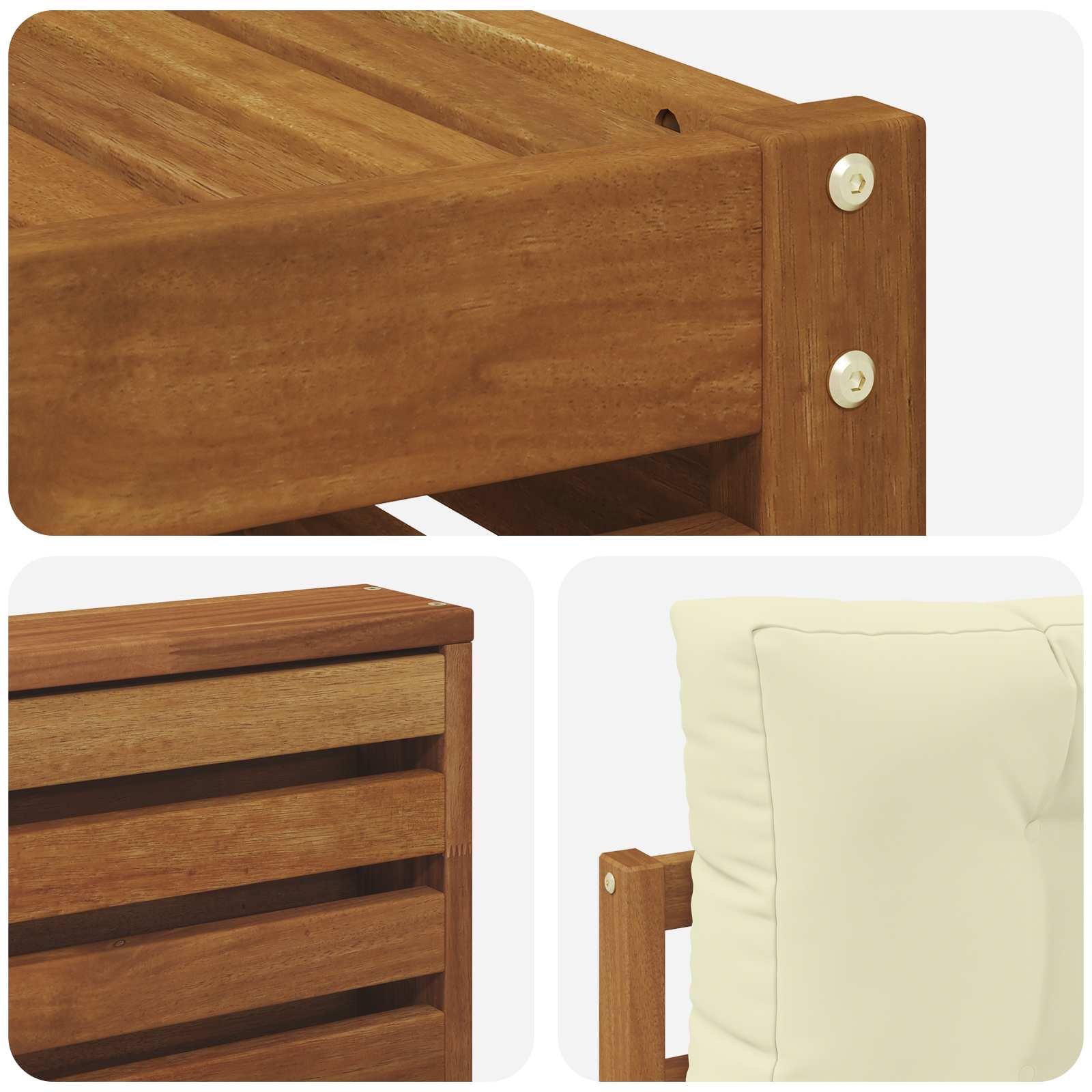Komplet zunanjega pohištva združuje stil in funkcionalnost ter se lepo prilega vsakemu vrtu ali terasi. Njegova moderna zasnova s čistimi linijami in minimalno okrasjem dodaja eleganco ter omogoča sprostitev in druženje na prostem. Celega ga izdelajo iz trdnega akacijevega lesa, kar zagotavlja trpežnost in dolgotrajno privlačnost, kar je popolna izbira za tiste, ki iščejo praktično, a tudi lepo pohištvo za na prostem. Vzdržljiv trden akacijev les: Ta set je izdelan iz trdnega akacijevega lesa, poznanega po svoji trpežnosti in odpornosti na zunanje dejavnike. Stabilna konstrukcija nudi zanesljivo oporo in dolgotrajno stabilnost, naravna barva pa obogati vsak vrt ali teraso. Oblikovanje, odporno na vreme: Set ima lakirano površino, ki ponuja dodatno zaščito pred soncem in dežjem ter okoljskimi vplivi. Polirana obdelava ohranja privlačnost in funkcionalnost, kar zagotavlja dolgotrajno trpežnost za vaš vrt ali dvorišče. Komponente in zasnova: Vsak del, od naslonov do sedežnih površin, je zasnovan za estetiko in udobje. Opora nudi dodatno udobje ter ustvarja usklajen dizajn, primeren za razne zunanje dogodke. Udobje in vsestranskost: Modularna zasnova omogoča prilagodljive konfiguracije, ki ustrezajo vašim potrebam. Idealno za sprostitev, družabna srečanja ali mirno branje, ta set se zlahka prilagodi vsakemu zunanjemu okolju in maksimira udobje. Enostavna nega in vzdrževanje: Vzdrževanje pohištva je enostavno, dovolj je, da ga obrišite z vlažno krpo in se izogibate ostrim čistilom. Redna nega ohranja njegov videz in podaljšuje življenjsko dobo pohištva.