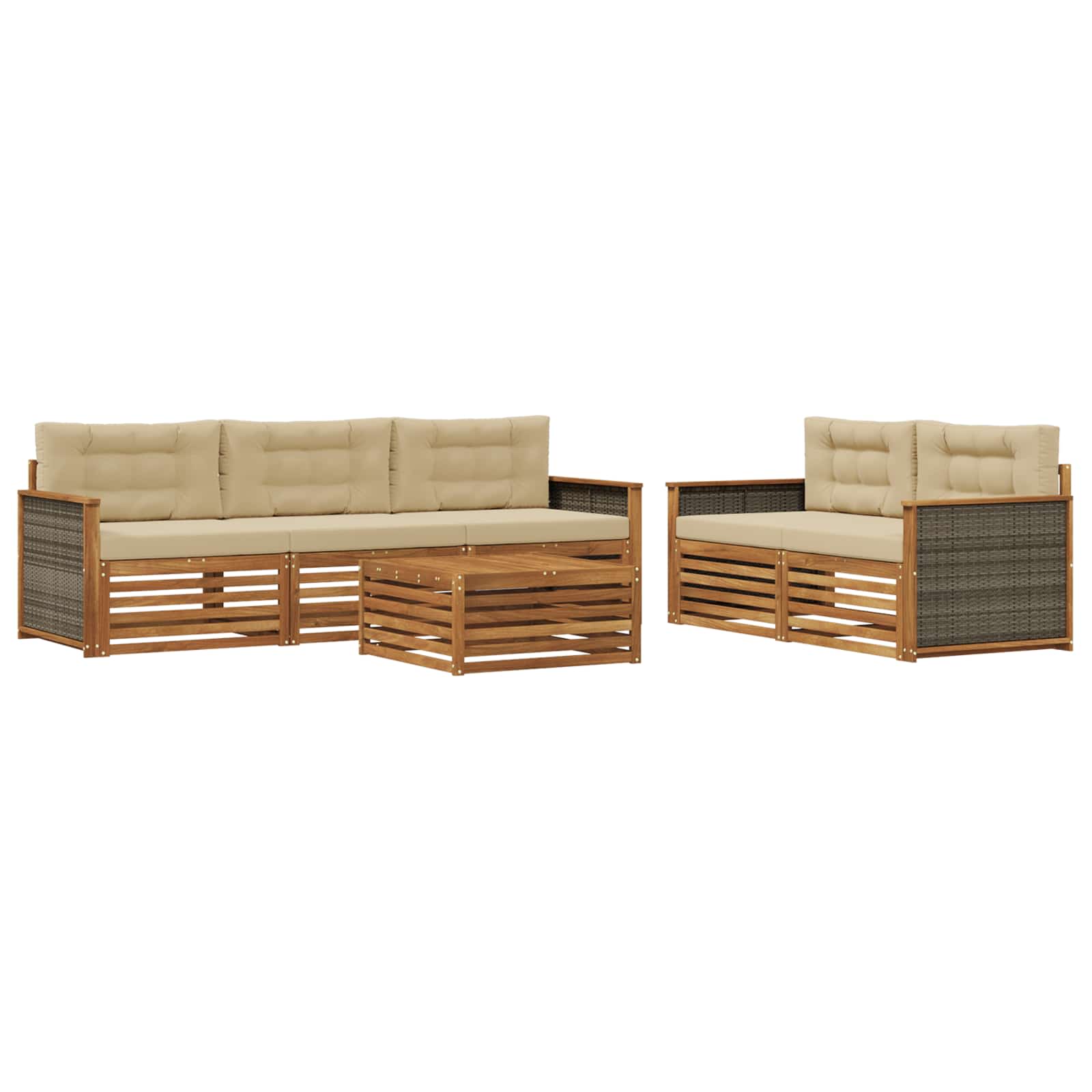 Ta zunanji set združuje stil in funkcionalnost, kar ga naredi za super osrednji del vrta ali terase. S svojo moderno zasnovo, ki ima čiste linije in minimalističen pristop, dodaja eleganco in podpira sprostitev ter druženje na prostem. Narejen je iz trdnega akacijevega lesa, kar zagotavlja dolgotrajnost in brezskrbno uporabo. Vzdržljiv trden akacijev les: Ta set iz trdnega akacijevega lesa je zelo trpežen in odporen na zunanje razmere. Udobno in stabilno sedenje, naravna barva doda toplino vsakemu ambientu. Odpornost proti vremenu: Lakirana površina nudi dodatno zaščito pred soncem in dežjem ter ohranja videz in funkcionalnost, kar podaljša življenjsko dobo za tvoj vrt ali teraso. Komponente in zasnova: Vsak del je skrbno zasnovan za udobje in funkcionalnost, kar zagotavlja harmoničen videz in ustreza različnim zunanjim priložnostim. Udobje in prilagodljivost: Modularna zasnova ti omogoča, da jo prilagodiš svojemu prostoru in potrebam. Popolna je za sprostitev ali druženje, enostavno se prilagodi vsakemu zunanjemu okolju. Enostavna oskrba: Za čiščenje zadostuje, da površino obrišeš z vlažno krpo. Redno vzdrževanje pa podaljša življenjsko dobo pohištva.