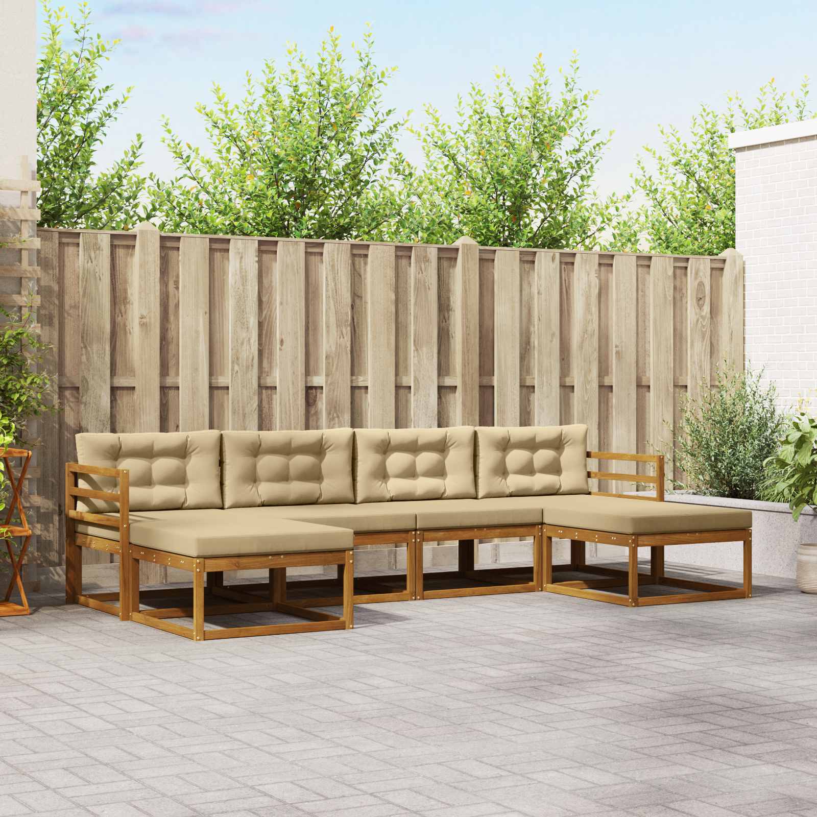 Ta set modernih kavčev je odlična izbira za vsak zunanji prostor. Zasnovan je s stilom in vzdržljivostjo, kar mu daje eleganten in sodoben videz, idealen za vrtne površine, terase in območja ob bazenu. Izdelan iz trden akacijevega lesa, ta set nudi privlačno in trdno izbiro za druženje in sprostitev na prostem. Njegova podrobna konstrukcija preoblikuje prostor v sofisticirano okolje, ki se brez težav sklada z različnimi zunanjimi dekoracijami, zato je odlična izbira za tiste, ki cenijo estetiko zunanjega pohištva. Trden akacijev les: Ta robusten set kavčev je iz trdnega akacijevega lesa, ki se dobro upira vremenskim vplivom, kar ga dela zanesljivo izbiro za zunanjo uporabo. Lepota lesa se kaže v njegovi sposobnosti, da prenese vsakodnevno obrabo in ponuja dolgo uporabo v vsakem vrtu, na terasi ali ob bazenu. Eleganten dizajn z letvami: Zasnova z letvami prinaša privlačen videz in izboljšuje udobje z odličnim opornim naslonom. Ta značilnost zajema tako stil kot udobje, kar naredi vsako sedenje prijetno. Udobni nasloni za roke: Opremljen z nasloni za roke, ta moderne set nudi dodatno oporo in udobje za dolge trenutke sprostitve. Nasloni za roke se skladajo z oblikovanjem in dodajajo eleganco celotnemu videzu. Stabilen okvir: Fiksni okvir zagotavlja varno strukturo pohištva. Vsaka komponenta je skrbno izbrana, da izboljša vzdržljivost in održi obliko tudi v spremenljivem vremenu, kar dodaja k njeni robustnosti in dolgi življenjski dobi. Enostavna skrb: Za vzdrževanje preprosto obrišite pohištvo z vlažno krpo, da ohranite čisto in podaljšate njegovo življenje. Enostavna skrb omogoča dostopno izbiro za tiste, ki želijo praktičnost brez žrtev pri estetiki.