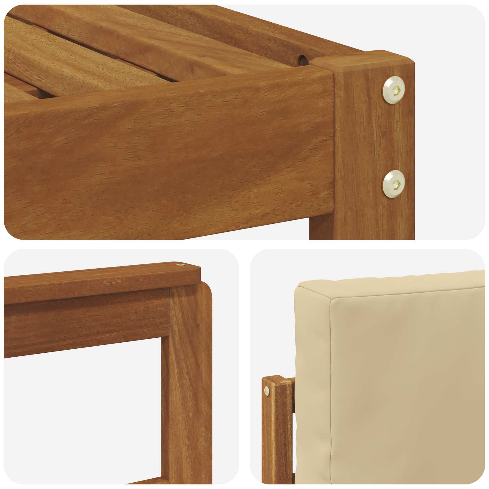 Ta moden zunanji kavč je super dodatek za vaš prostor, ki bo spremenil vaš vrt, teraso ali dvorišče v pravo oazo sprostitve. Ima elegantno pravokotno obliko, ki je vse o modernem videzu – preprosto, funkcionalno in brez prekomernega okraševanja. Idealno za mirne trenutke na prostem! Obrt inženirskega lesa: Ta kavč je izdelan iz trpežnega inženirskega lesa, ki mu doda naraven in topel videz. Material je izbran tako, da zdrži vse vremenske razmere, kar zagotavlja dolgotrajno uporabo. Funkcionalne komponente: S hrbtom, ki izgleda super z vseh strani, je ta set vizualno privlačen in idealen za odprte prostore. Zasnova je premišljena, noge pa zagotavljajo trdno podporo. Enostavno vzdrževanje: Ta kavč se enostavno čisti, kar pomeni še več uživanja na prostem! Površine iz inženirskega lesa se upirajo madežem, kar pomeni, da bo dolgoročno izgledal še lepše. Prilagodljivo okolje: Ta set je primeren za različne zunanje prostore – naj gre za vrtove, terase, obala bazena ali dvorišča. Njegova zasnova se lepo vklopi v vsak prostor, ne glede na to, ali gostite prijatelje ali uživate v miru. Preprosta sestava: Sestavljanje je enostavno – potrebujete samo dva človeka in izvijač. Hitro in enostavno, tako da boste hitro uživali v svojem novem kavču!