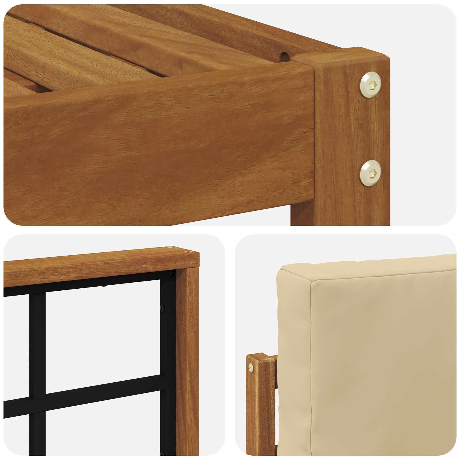 Ta moden zunanji kavč je super dodatek za vaš prostor, ki bo spremenil vaš vrt, teraso ali dvorišče v pravo oazo sprostitve. Ima elegantno pravokotno obliko, ki je vse o modernem videzu – preprosto, funkcionalno in brez prekomernega okraševanja. Idealno za mirne trenutke na prostem! Obrt inženirskega lesa: Ta kavč je izdelan iz trpežnega inženirskega lesa, ki mu doda naraven in topel videz. Material je izbran tako, da zdrži vse vremenske razmere, kar zagotavlja dolgotrajno uporabo. Funkcionalne komponente: S hrbtom, ki izgleda super z vseh strani, je ta set vizualno privlačen in idealen za odprte prostore. Zasnova je premišljena, noge pa zagotavljajo trdno podporo. Enostavno vzdrževanje: Ta kavč se enostavno čisti, kar pomeni še več uživanja na prostem! Površine iz inženirskega lesa se upirajo madežem, kar pomeni, da bo dolgoročno izgledal še lepše. Prilagodljivo okolje: Ta set je primeren za različne zunanje prostore – naj gre za vrtove, terase, obala bazena ali dvorišča. Njegova zasnova se lepo vklopi v vsak prostor, ne glede na to, ali gostite prijatelje ali uživate v miru. Preprosta sestava: Sestavljanje je enostavno – potrebujete samo dva človeka in izvijač. Hitro in enostavno, tako da boste hitro uživali v svojem novem kavču!