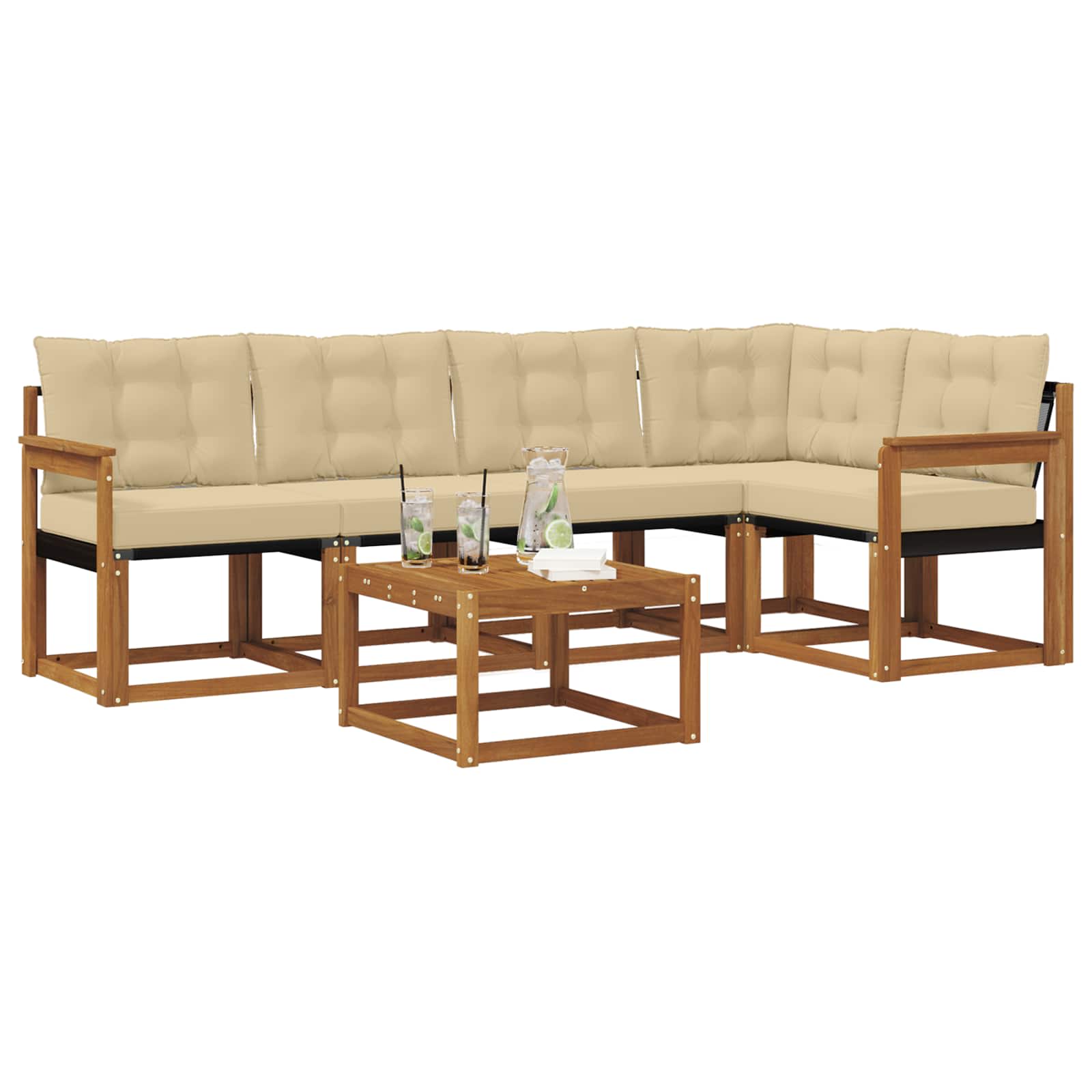 Ta moderni set kavč odlično združuje stil in funkcionalnost, kar omogoča, da se prilega vsakemu vrtu, terasi, dvorišču ali okolici bazena. S preprosto zasnovo prinaša čiste linije in minimalno okraševanje, kar ustvarja sofisticirano, a vabljivo vzdušje. Idealno za zunanjo uporabo, set obsega sedežno postavitev s sleek dizajnom, ki vabi goste, da se sprostijo in uživajo. Materiali: Skrbno narejen iz trdnega akacijevega lesa in textilena, ta set kavč prinaša naravno eleganco za zunanjo uporabo. Akacijev les je zelo trpežen, z lepim naravnim zaključkom, medtem ko textilen nudi udobno sedišče, kar zagotavlja dolgotrajno udobje. Kombinacija teh materialov pomeni, da set zlahka prenese vremenske vplive. Vključene komponente: Set vključuje uporabne elemente, kot so vodoodporne blazine, ki lahko prenesejo različne vremenske razmere. Odstranljive prek priročnih zadrg so enostavne za vzdrževanje. Naslonjala in kvalitetni nasloni za roke so zasnovani za večje udobje z zračno površino sedenja iz textilena. Lastnosti / Funkcija / Oblikovanje: Napredne lastnosti zagotavljajo udobje in praktičnost, saj ohranijo privlačnost tudi ob dolgotrajni izpostavljenosti soncu. Enostavno čiščenje omogoča udobje, medtem ko slatamelna postavitev omogoča učinkovito odvodnjavanje in suho površino, kar je idealno za osvežilne napitke. Priporočena uporaba: Popolno za vrtnarske kotičke, ob bazenih ali terasnih umikih, je set dovolj vsestranski, da obogati različne zunanje prostore. Prostoren je za zabave in udoben za osebno sprostitev, ponuja praktično rešitev za boljše zunanje doživetje. Nege in vzdrževanje: Ohranite privlačnost tako, da set brišete z vlažno krpo, kar omogoča enostavno čiščenje in brezskrbno vzdrževanje. Idealna izbira za vsak zunanji prostor.