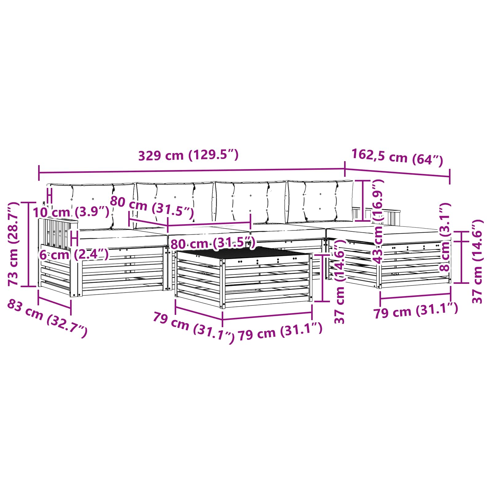 - 5 x Sedežna blazina: 80 x 80 x 8 cm (DvxŠxV)