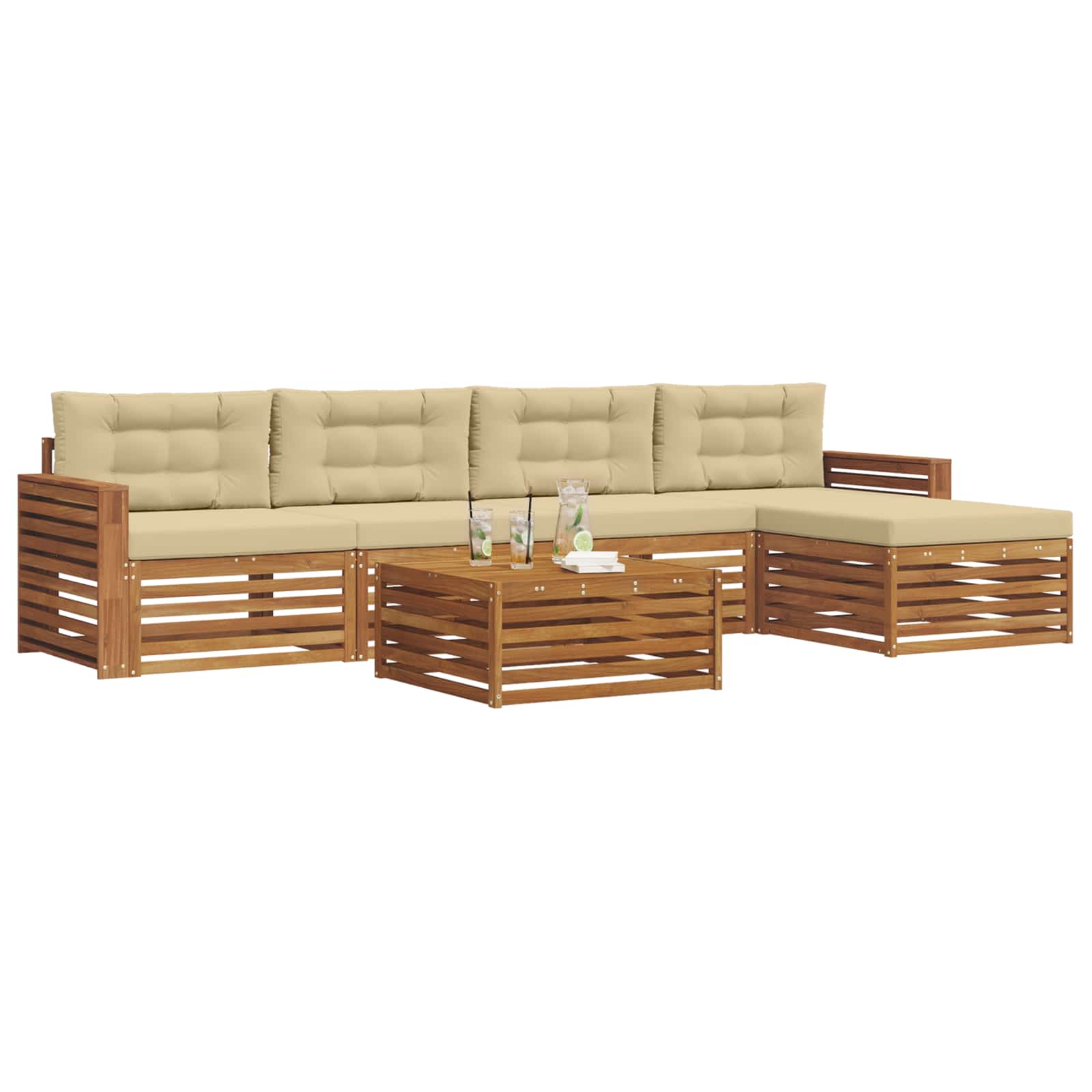 Ta zunanja garnitura povezuje stil in funkcionalnost ter ustvari izjemen center za vaš vrt ali teraso. S sodobnim dizajnom in čistimi linijami dodaja eleganco, obenem pa nudi podporo za sproščanje in druženje. Narejena iz trdnega akacijevega lesa, zagotavlja dolgotrajnost in lep videz – odlična izbira za vse, ki iščejo funkcionalno in estetsko zunanje pohištvo. Vzdržljiv trden akacijev les: Ta zunanji pohištvo iz trdnega akacijevega lesa je zelo vzdržljivo in odporno na vreme. Njegova stabilna konstrukcija zagotavlja dolgo življenjsko dobo, medtem ko topla barva doda čar vsakemu vrtu ali terasi. Oblikovanje odporne na vreme: Ta set zunanji pohištva ima polirano površino, ki dodatno ščiti pred soncem, rahlim dežjem in drugimi zunanjimi elementi. Poliran zaključek pomaga ohranjati videz in delovanje ter zagotavlja dolgo življenjsko dobo za vaš vrt, teraso ali dvorišče. Komponente in oblikovanje: Vsak del garniture, od naslonjal do naslonjal za roke, združuje stil in funkcionalnost. Podporne lastnosti zagotavljajo dodatno udobje, medtem ko koherentno oblikovanje ustvari vizualno privlačen sklop, primeren za vse zunanje priložnosti. Udobje in vsestranskost: Modularna zasnova omogoča prilagodljive postavitve, ki ustrezajo različnim prostorom in potrebam. Ta garnitura je odlična za sprostitev, zabave ali tihe trenutke branja in se enostavno prilagaja vsakemu zunanjemu okolju ter maksimira udobje in uporabnost. Enostavno vzdrževanje: Da pohištvo ostane v dobrem stanju, obrišite površino z vlažno krpo in se izogibajte ostrim ali abrazivnim čistilom. Redno vzdrževanje podaljša življenjsko dobo in ohrani videz pohištva.