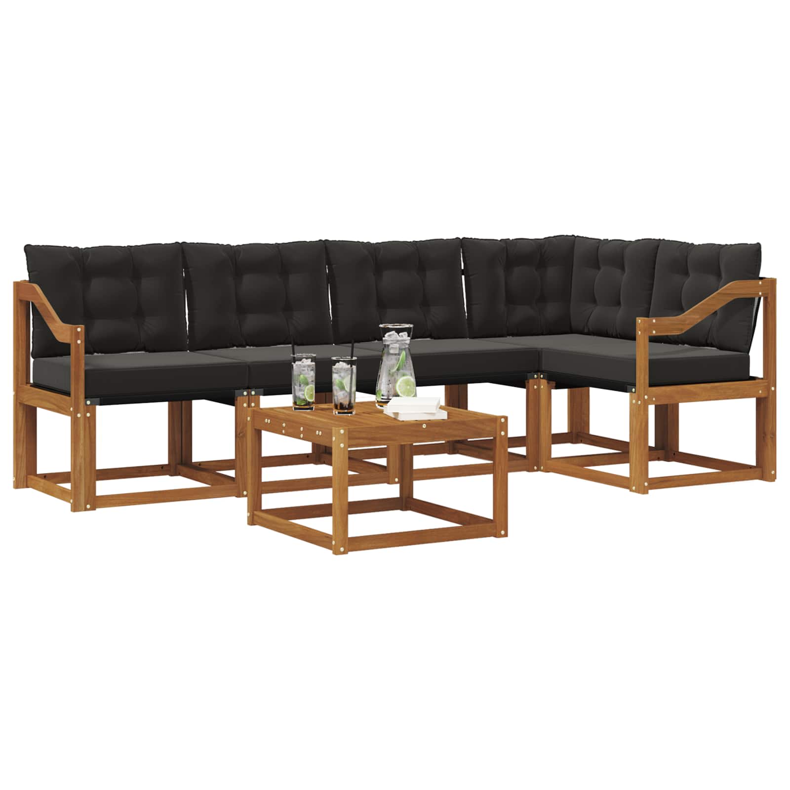 Ta moderni set kavč odlično združuje stil in funkcionalnost, kar omogoča, da se prilega vsakemu vrtu, terasi, dvorišču ali okolici bazena. S preprosto zasnovo prinaša čiste linije in minimalno okraševanje, kar ustvarja sofisticirano, a vabljivo vzdušje. Idealno za zunanjo uporabo, set obsega sedežno postavitev s sleek dizajnom, ki vabi goste, da se sprostijo in uživajo. Materiali: Skrbno narejen iz trdnega akacijevega lesa in textilena, ta set kavč prinaša naravno eleganco za zunanjo uporabo. Akacijev les je zelo trpežen, z lepim naravnim zaključkom, medtem ko textilen nudi udobno sedišče, kar zagotavlja dolgotrajno udobje. Kombinacija teh materialov pomeni, da set zlahka prenese vremenske vplive. Vključene komponente: Set vključuje uporabne elemente, kot so vodoodporne blazine, ki lahko prenesejo različne vremenske razmere. Odstranljive prek priročnih zadrg so enostavne za vzdrževanje. Naslonjala in kvalitetni nasloni za roke so zasnovani za večje udobje z zračno površino sedenja iz textilena. Lastnosti / Funkcija / Oblikovanje: Napredne lastnosti zagotavljajo udobje in praktičnost, saj ohranijo privlačnost tudi ob dolgotrajni izpostavljenosti soncu. Enostavno čiščenje omogoča udobje, medtem ko slatamelna postavitev omogoča učinkovito odvodnjavanje in suho površino, kar je idealno za osvežilne napitke. Priporočena uporaba: Popolno za vrtnarske kotičke, ob bazenih ali terasnih umikih, je set dovolj vsestranski, da obogati različne zunanje prostore. Prostoren je za zabave in udoben za osebno sprostitev, ponuja praktično rešitev za boljše zunanje doživetje. Nege in vzdrževanje: Ohranite privlačnost tako, da set brišete z vlažno krpo, kar omogoča enostavno čiščenje in brezskrbno vzdrževanje. Idealna izbira za vsak zunanji prostor.