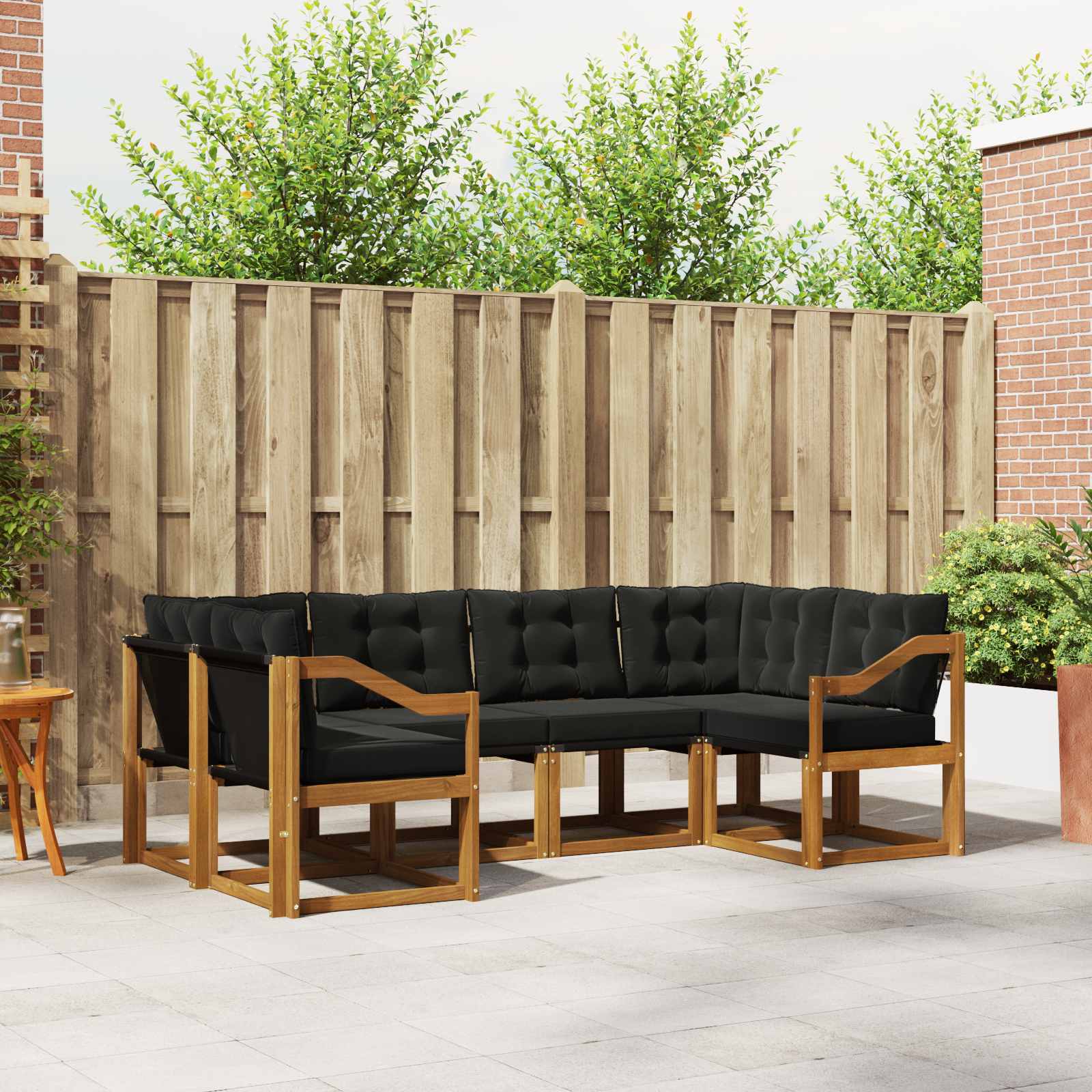 Ta sodoben sofaset je kul za zunanje prostore, kot so vrtovi, terase in obrobja bazenov. Njegova topla rjava barva in naravna lesna struktura prinašata eleganco in udobje kamorkoli. Zasnovan za sprostitev in druženje, je trdno zgrajen in super izgleda v naravi. Materiali: Zgrajen iz trdnega akacijevega lesa in Textilene, ta sofaset nudi dolgoživost in estetski videz. Akacijev les prinaša naravno toplino in vzdržljivost za dolgotrajno uporabo na prostem. Vključene komponente: Textilene sedežne površine, podporno naslonjalo in debele blazine ponujajo vrhunsko udobje. Sedeža blazina z zadrgo za enostavno vzdrževanje. Lastnosti / Funkcija / Oblikovanje: Površina, odporna na bledenje in enostavna za čiščenje, ohranja svoj videz in funkcionalnost ob zahtevnem vremenu. Podporno naslonjalo ponuja zaradi udobja medtem ko sedite.) Priporočena uporaba: Idealen za ustvarjanje prijetnega vzdušja na vašem vrtu, terasi ali ob bazenu; je odlična izbira za druženje in sproščene trenutke na prostem. Vzdrževanje: Ohranite lepoto kompleta z enostavnim brisanjem z vlažno krpo. Blazine so enostavne za odstranjevanje in pranje, kar zagotavlja, da vaše sedenje vedno izgleda kot novo.