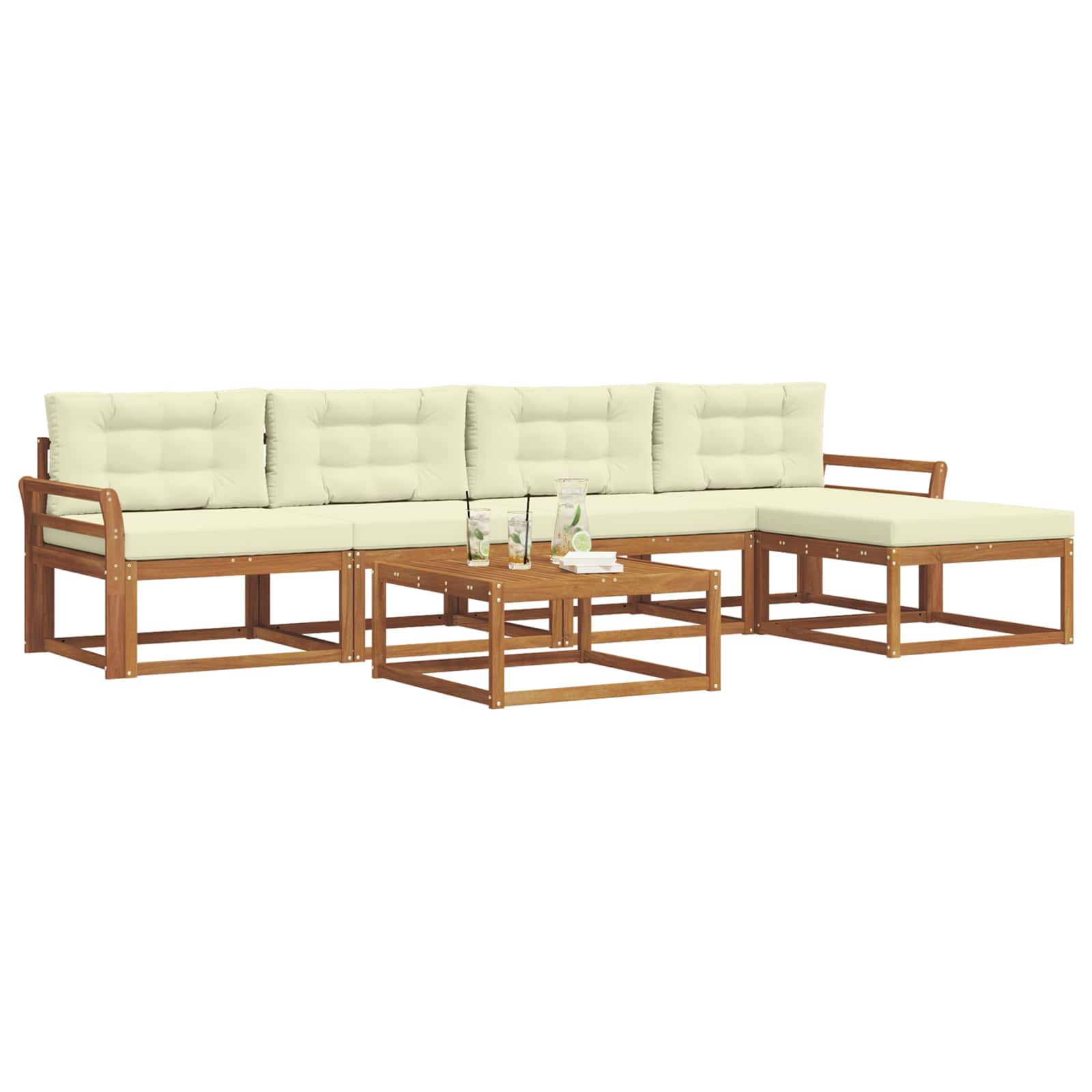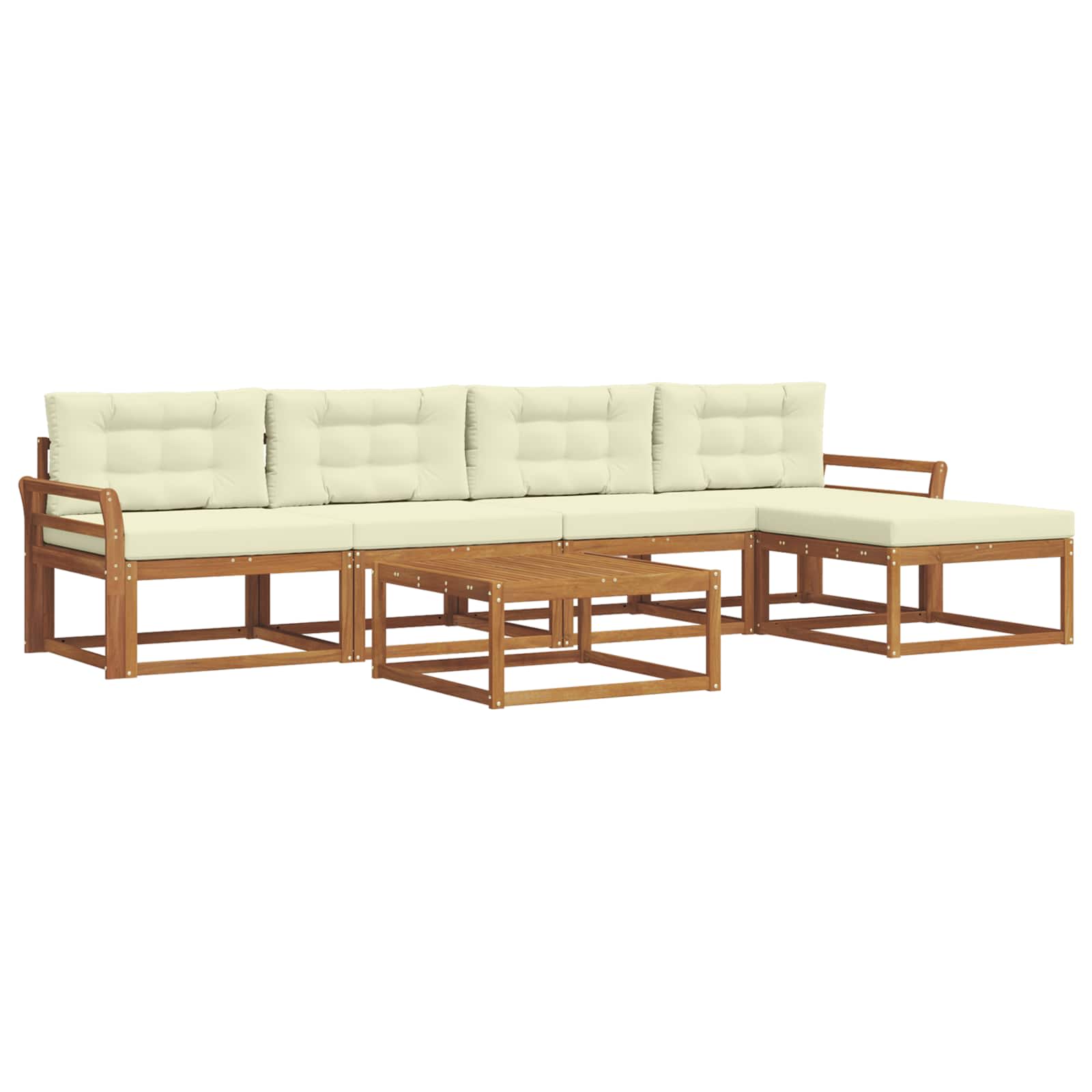 Ta eleganten zunanji kotni kavč ponuja stilsko rešitev za vsak patio ali vrt. S čistimi linijami in modernim dizajnom je narejen iz trdnega akacijevega lesa, znanega po svoji trajnosti in lepih vzorcih. Njegova rjava barva doda toplino, kar ga naredi privlačen v vseh zunanjih prostorih. Super je za goste ali mirne večere, saj se brez težav vklopi v raznolike stile in prinese prijetno vzdušje. Trden akacijev les: Material zagotavlja dolgotrajno vzdržljivost in brezčasen videz. Njegova naravna lepota doda šarm vsakega zunanjega prostora. Letvičasta zasnova: Ne samo, da izgleda dobro, ampak omogoča tudi, da zrak kroži, da je udobno tudi v vročih dneh. Funkcionalen dizajn za tiste, ki cenijo styling in udobje. Odporno na vreme: Kavč obdrži svojo lepoto kljub vremenskim vplivom, saj se upira UV žarkom in vlagi. Ni skrbi skozi vse leto. Modularna prilagodljivost: Enostavno premikaj dele, da ustreza tvojemu prostoru in dogodku. Z lahkoto preideš od manjših srečanj do večjih zabav. Enostavno vzdrževanje: Da ohraniš njegov videz, očistiš z vlažno krpo in uporabljaš pokrov, ko ni v uporabi. Tako ostane vedno videti super.