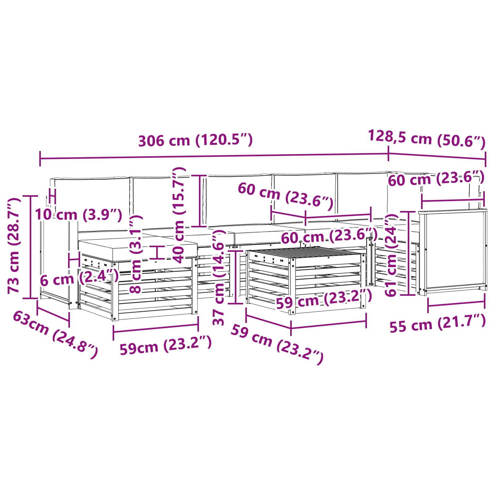 - 7 x Sedežna blazina: 60 x 60 x 8 cm (D x Š x V)