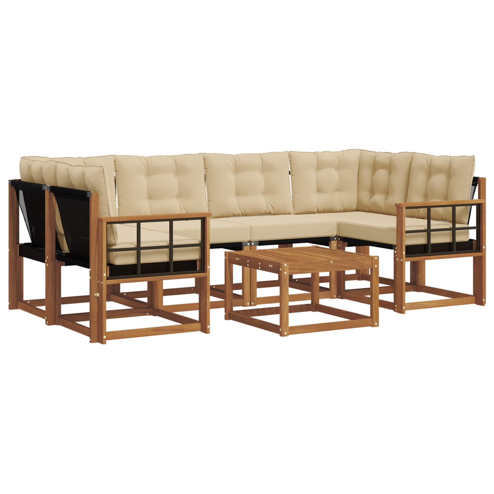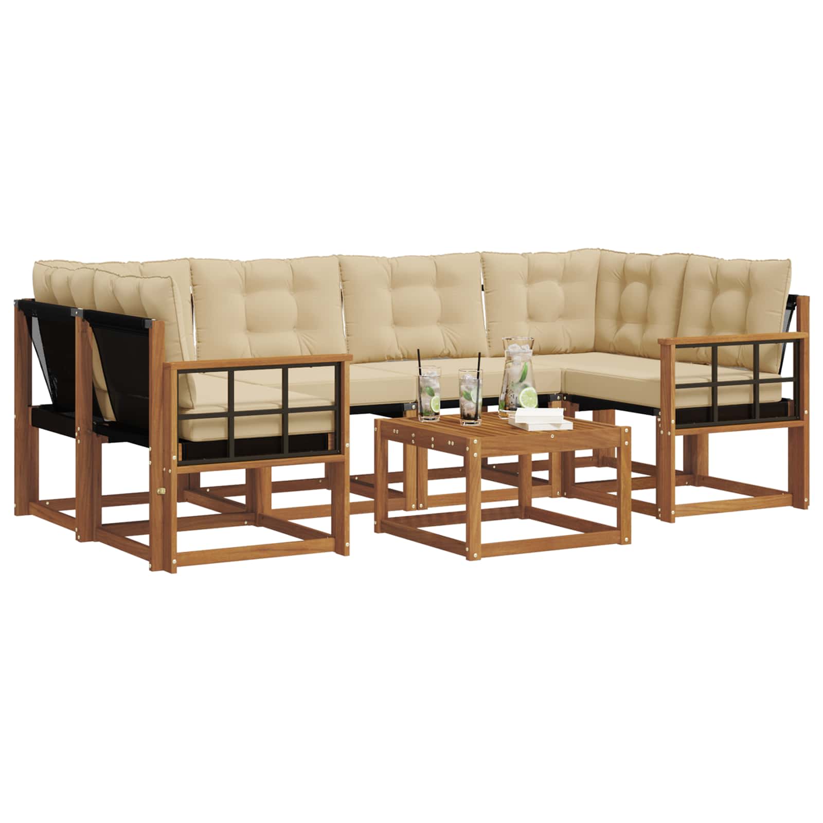 Ta moderni sedežni set je središče vsake zunanje prostorije, s stilom, ki popestri vaš vrt, teraso ali bazen. Uživajte na prostem: naravna tekstura lesa in podpora hrbtu ter udobni nasloni za roke vam omogočajo prijetno sprostitev in hkrati dvigujejo vaš zunanji dekor. Njegovi zemeljski odtenki se popolnoma ujamejo v naravno okolico in nudijo prijetno vzdušje za druženje ali sprostitev. Eleganten material: Izdelan iz akacijevega lesa in Textilene, ta sedežni set ponuja naravno teksturo in trpežne sedežne površine. Združene komponente nudijo moderne linije in dolgotrajno vzdržljivost v vseh vremenskih pogojih. Celovita zasnova: Opremljen z udobnimi blazinami in podporo za hrbet, je vsak del seta zasnovan za udobje. Praktični nasloni za roke in odprti vrh omogočajo lažje čiščenje, kar povečuje udobje med sproščanjem na prostem. Pameten dizajn: Odporen na bledenje, ta set zagotavlja dolgotrajno zanimanje in enostavno vzdrževanje, saj so površine enostavne za čiščenje, kar zagotavlja svež izgled za vsakodnevno uporabo. Vsestrana uporaba: Idealno za vrt, teraso ali bazen, ta sedežni set se prilagaja različnim zunanjim prostorom. Njegov moderen slog dodaja pridih sofisticiranosti, kar je primerno za zabave ali prijetno sprostitev. Enostavno vzdrževanje: Ta sedežni set je zasnovan za hitro in enostavno čiščenje – le obrišite ga z vlažno krpo. Snemljive prevleke olajšajo nego in zagotavljajo dolgotrajno privlačnost.