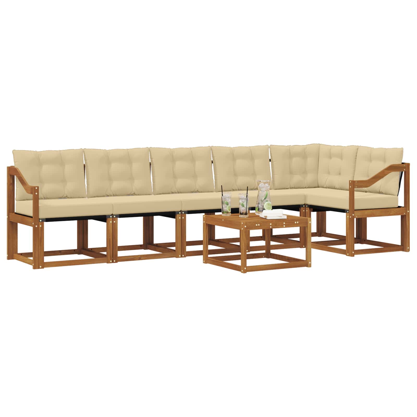 Ta moderna sedežna garnitura prinese svežino modernosti v vaše zunanje prostore. Z lahkotnimi linijami in skoraj brez okrasja je super za vaš vrt, patio ali kar ob bazenu, saj kombinira uporabnost in privlačnost. Zasnovana za udoben čas na prostem, ponuja bogate rjave tone, ki se lepo zlijejo z raznimi zunanjimi dekoracijami, kar vabi k sproščujočim trenutkom s stilom in udobjem. Okvir iz trdnega akacijevega lesa Sedežna garnitura iz trdnega akacijevega lesa nudi trdnost in vzdržljivost, odlična izbira za zunanje prostore, kjer je izpostavljena vremenskim vplivom in obrabi. Vsestran in odporen Zaščiten pred bledenjem, ta moderna sedežna garnitura koristi vrhunski textilen, ki zdrži sončne žarke in vlago, ter obdrži svež izgled tudi po dolgem času uživanja na prostem. Praktični nasloni za roke Okvir iz trdnega akacijevega lesa dodaja elegantnost in funkcionalnost, napreden dizajn pa nudi udobno oporo za roke, kar želite imeti na dosegu roke. Vremensko odporne blazine Vsak sedež ima debelo obloženo blazino iz vremensko odpornine tkanine, ki ponuja dolgotrajno udobje. Pena v notranjosti ponuja odlično oblazinjenje, snemljive prevleke pa skrbijo za enostavno čiščenje. Hitro in enostavno vzdrževanje Da bo vaša garnitura vedno videti sveža, preprosto obrišite površine z vlažno krpo, brez potrebe po dodatnih čistilih. Ohranite čisto in vabljivo sedenje skozi vse leto.