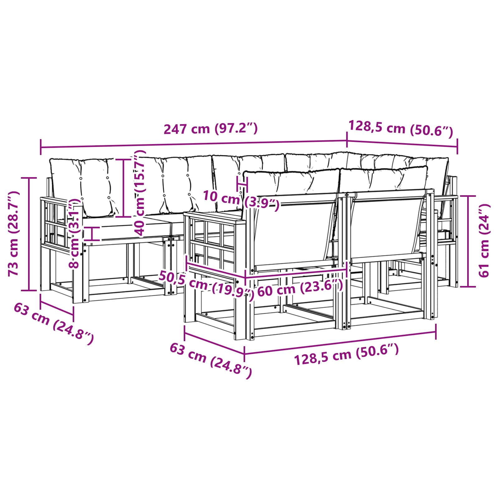 - 6 x Sedalna blazina: 60 x 50,5 x 8 cm (D x Š x V)