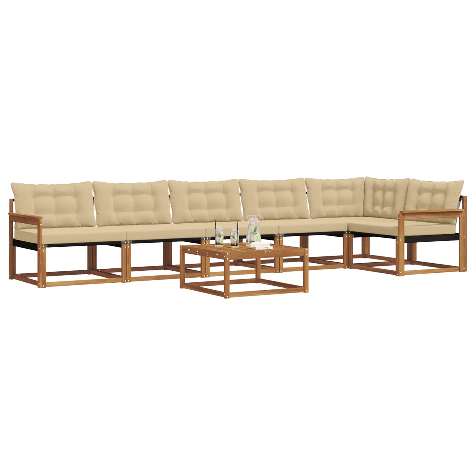 Ta zunanji pohištveni komplet združuje stil in praktičnost ter ponuja osupljivo središče za vsak vrt ali teraso. Njegova moderna zasnova s čistimi linijami in minimalnimi detajli doda eleganco, hkrati pa omogoča sproščanje na prostem in družabne dogodke. Akacijev les zagotavlja trajnost in lepo estetiko, kar ga naredi idealno izbiro za vse, ki iščejo funkcionalnost in eleganco v zunanjem pohištvu. Vzdržljiv trden akacijev les: Ta zunanji pohištveni komplet, izdelan iz trdnega akacijevega lesa, se ponaša z dolgotrajnostjo in odpornostjo na zunanje vplive. Njegova trdna konstrukcija nudi stabilnost in zanesljivo podporo, pri tem pa toplina naravnega tona izboljša videz vašega vrta ali terase. Vremensko odporna zasnova: Ta komplet ima zaščitno lakirano površino, ki ščiti pred soncem, blagim dežjem in drugimi zunanjimi vplivi. Poliran zaključek ohranja videz in funkcionalnost ter zagotavlja dolgo življenjsko dobo za vašo teraso, vrt ali dvorišče. Komponente in zasnova: Vsak del, od naslonov do sedežne površine, je zasnovan za udobje in slog. Podporne lastnosti zagotavljajo dodatno udobje, medtem ko kohezivna zasnova ustvari vizualno usklajen set, primeren za različne zunanje priložnosti. Udobje in prilagodljivost: Modularna zasnova omogoča različne konfiguracije, primerne za vsak prostor in potrebe. Odlična je za sprostitev, druženja ali mirne trenutke s knjigo, saj se ta komplet enostavno prilagodi vsakemu zunanjemu okolju. Enostavno vzdrževanje: Da bo pohištvo dolgo v dobrem stanju, ga obrišite z vlažno krpo in se izogibajte ostrim čistilom. Redno vzdrževanje ohranja njegov videz in podaljšuje življenjsko dobo pohištva.