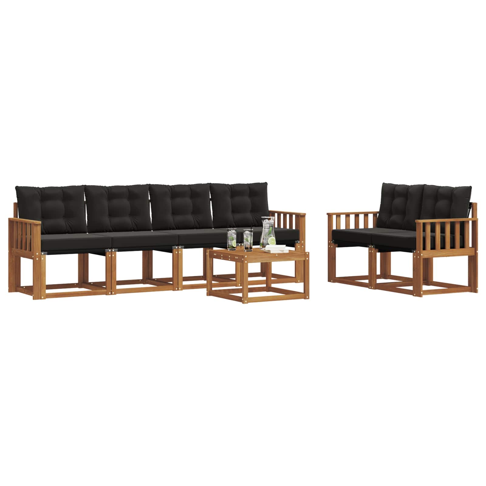 Zunanji pohištveni set povezuje stil in funkcionalnost ter postane osrednji del vsakega vrta ali terase. Njegov sodoben dizajn s čistimi linijami in preprostimi detajli doda eleganco ter omogoča sprostitev in družabne trenutke na prostem. Ta set, izdelan iz trdnega akacijevega lesa, nudi vzdržljivost in dolgo življenjsko dobo ter je popolna izbira za tiste, ki iščejo funkcionalno in estetsko privlačnost v zunanjih prostorih. Vzdržljiv trd acacijev les: Ta set zunanjega pohištva je zelo trden in odporen na vremenske vplive. Trdna konstrukcija nudi dolgotrajno podporo, naravni ton pa izboljša vsak vrt ali teraso. Odporen na vreme: Lakirana površina ponuja dodatno zaščito pred soncem in rahlim dežjem. Polirana končna obdelava ohranja lepoto in funkcionalnost, kar zagotavlja dolgotrajno vzdržljivost. Komponente in dizajn: Vsak del seta je zasnovan s stilom in funkcijo v mislih. Dodatne podpore natančno skrbijo za udobje, kar ohranja usklajeno in privlačno zasnovo. Udobje in prilagodljivost: Modularna zasnova omogoča prilagoditve za različne potrebe. Idealno za sprostitev ali družabna srečanja; ta set se enostavno prilagaja različnim zunanjim ambientom. Enostavna nega: Za ohranjanje pohištva obrišite z vlažno krpo in se izogibajte ostrim čistilom. Redno vzdrževanje podaljšuje življenjsko dobo pohištva.