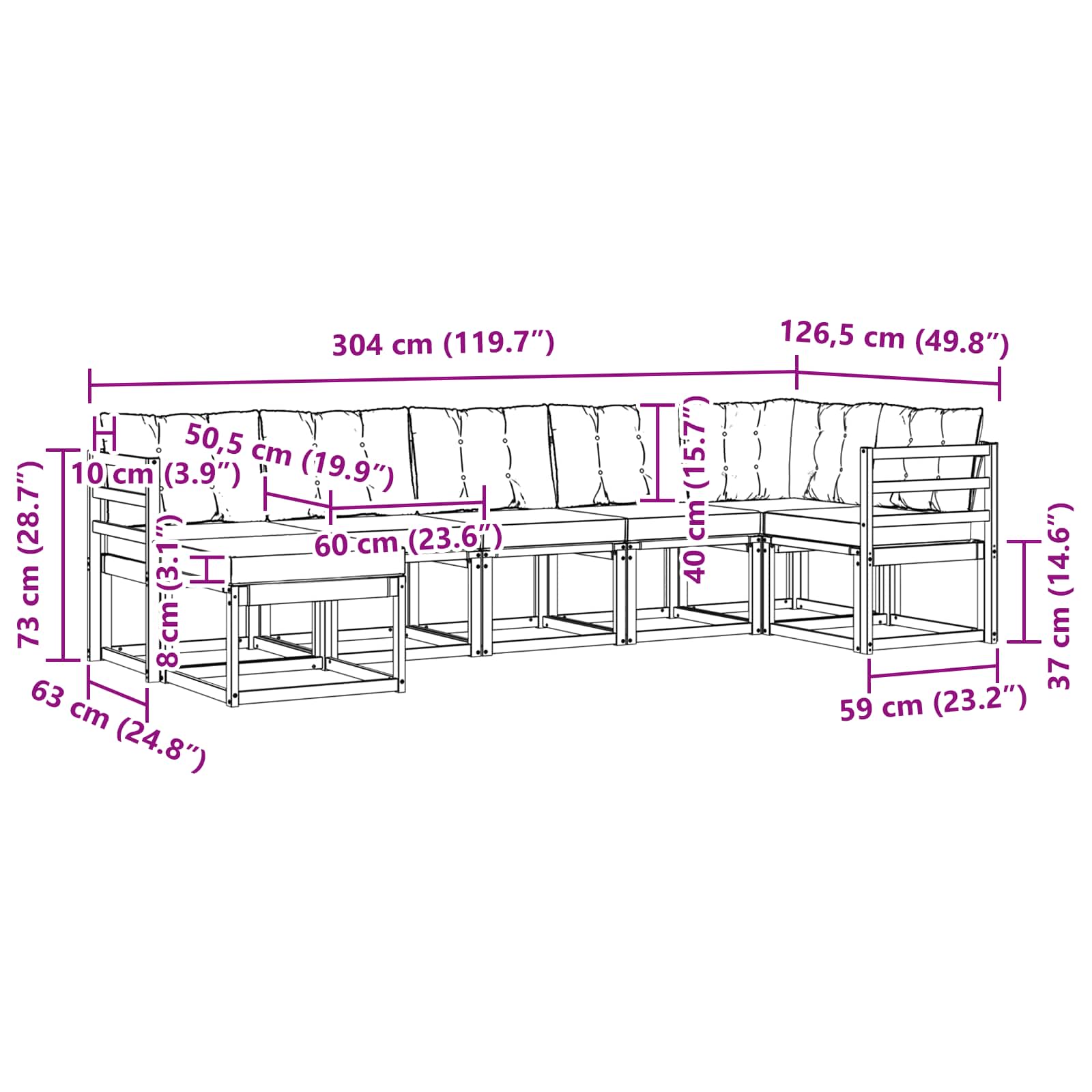 - 5 x Srednja Sofa: 59 x 63 x 73 cm (D׊×V)