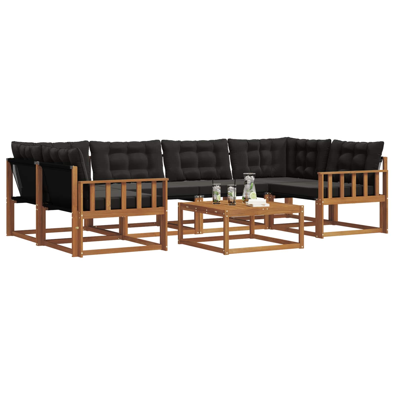 Set zunanjega pohištva kombinira stil in funkcionalnost, da postane osrednji del vsakega vrta ali terase. Njegova sodobna zasnova s čistimi linijami in minimalnimi detajli dodaja eleganco ter omogoča sprostitev na prostem in druženje. Narejeno iz trdnega akacijevega lesa, pohištvo nudi trajnost in dolgotrajno lepoto, zato je odlična izbira za vse, ki iščejo praktičnost in lep dizajn zunanjega pohištva. Vzdržljiv trden akacijev les: Narejena iz trdnega akacijevega lesa, ta set je znan po svoji vzdržljivosti in odpornosti na zunanjo okolico. Robustna konstrukcija nudi zanesljivo podporo in stabilnost, medtem ko naravne barve prinašajo toplino v vsak vrt ali teraso. Odpornost na vreme: Površina je lakirana za dodaten sloj zaščite pred soncem in dežjem. Polirana površina ohranja videz in funkcionalnost, kar zagotavlja, da bodo vaša teraso ali dvorišče dolgotrajno trajni. Komponente in zasnova: Vsak del, od naslonov do sedežnega dela, je zasnovan za stil in funkcionalnost. Podporne funkcije nudi dodatno udobje, kohezivna zasnova pa zagotavlja vizualnoharmonično celoto za različne zunanje priložnosti. Udobje in prilagodljivost: Modularna zasnova omogoča različne postavitve za različne prostore. Idealno za sprostitev, druženje ali mirno branje, ta garnitura se brez težav prilagodi vsakemu okolju ter maksimira udobje in uporabnost. Preprosto vzdrževanje: Da ohranite pohištvo v dobrem stanju, ga obrišite z vlažno krpo in se izogibajte agresivnim čistilom. Redno vzdrževanje ohranja videz in podaljšuje življenjsko dobo pohištva.